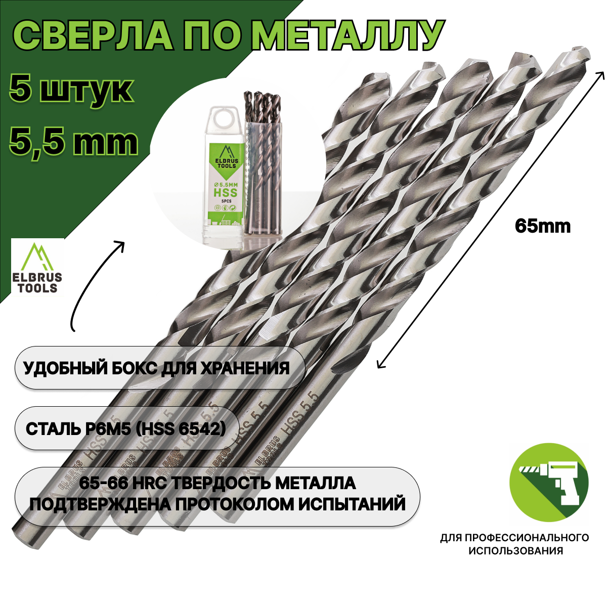 10 цен на Сверло по металлу 5,5 мм - 5 шт Сталь Р6М5 DIN338