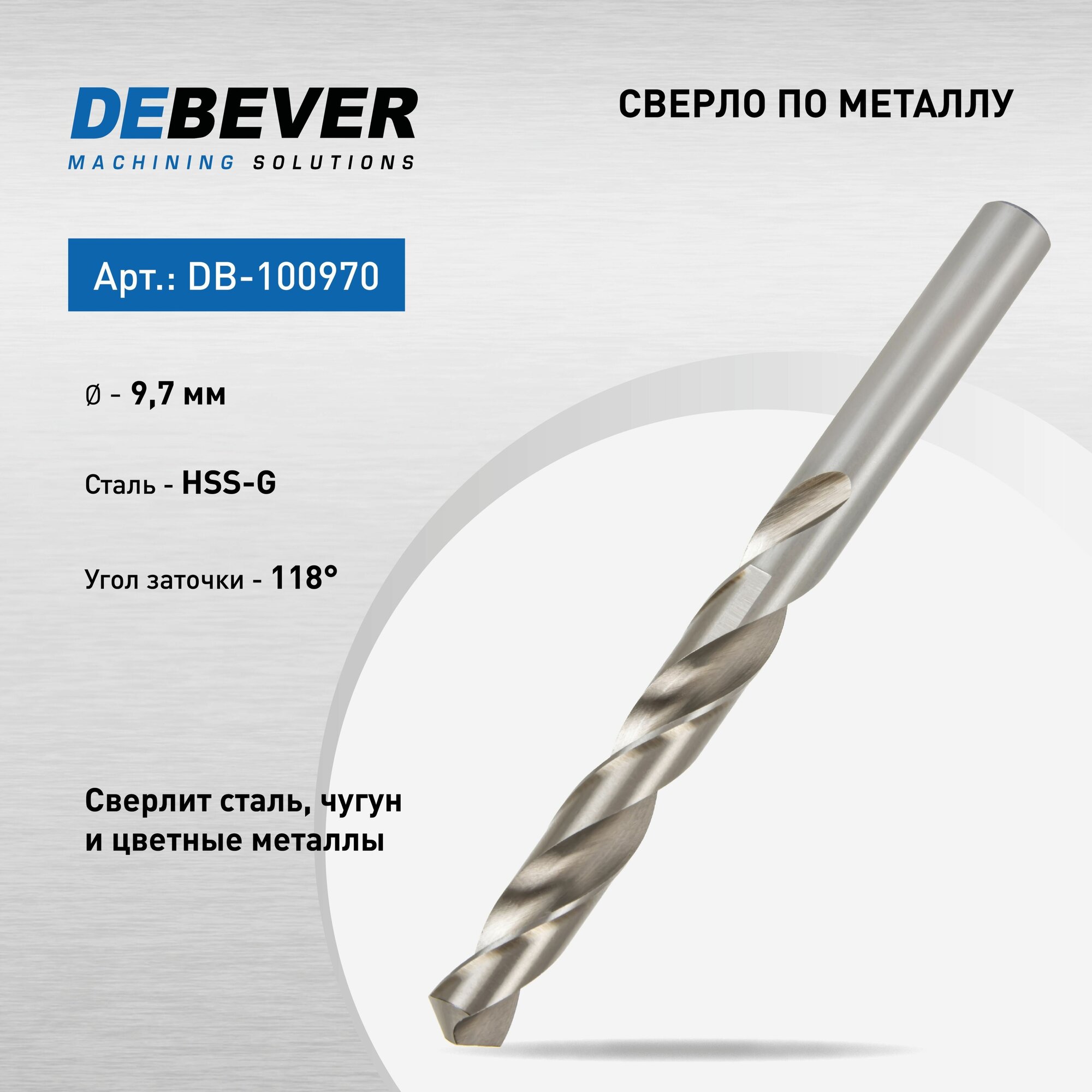 DeBever Сверло спиральное по металлу 9,7 мм, HSS, DIN 338, 118 град DB-100970 информация: