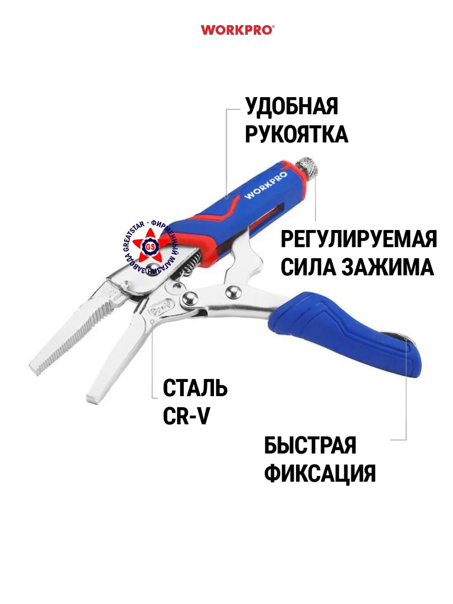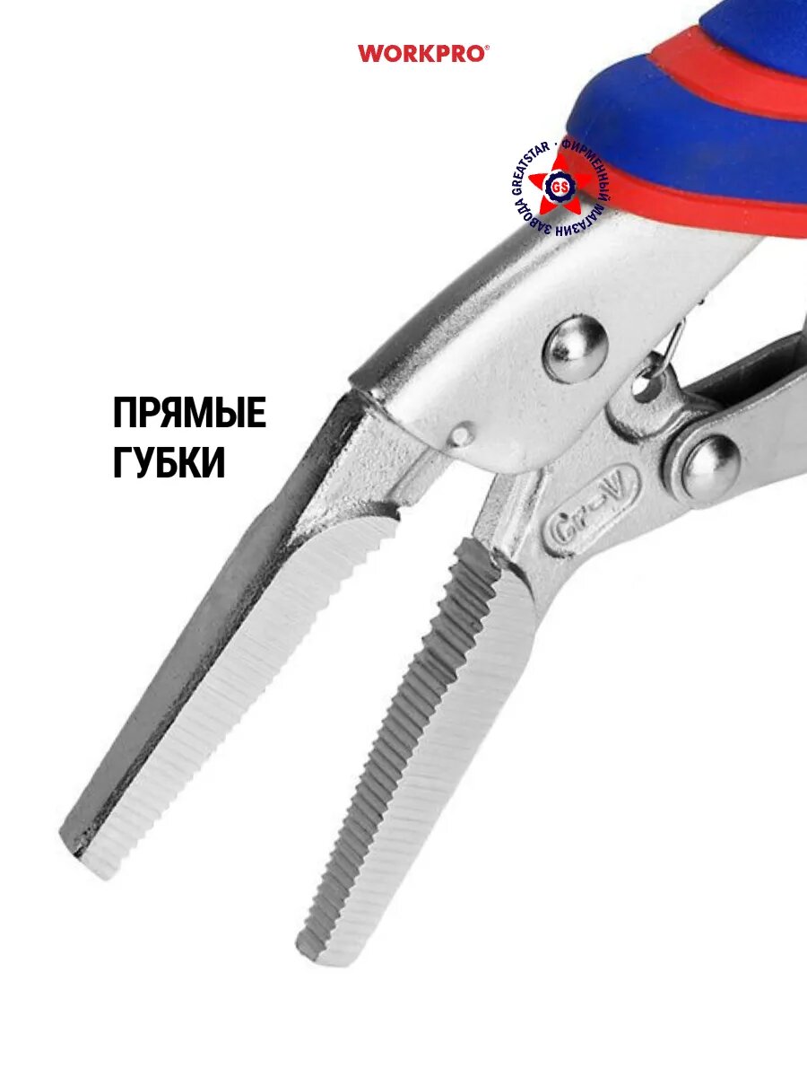Клещи зажимные с удлиненными прямыми губками WP231075, WORKPRO #WP231075 информация: