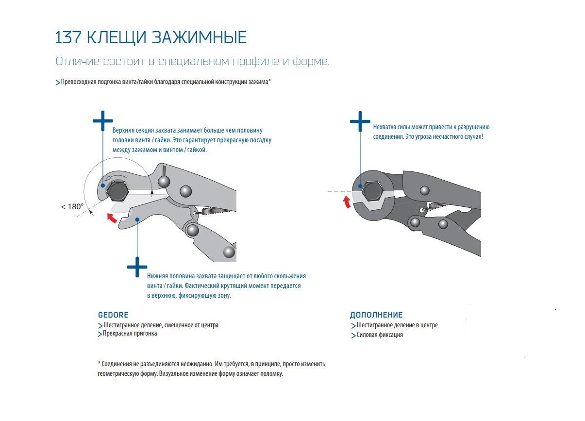 Клещи зажимные 7" 137 7 с регулировочным винтом и расцепляющим рычагом 6406620 GEDORE информация: