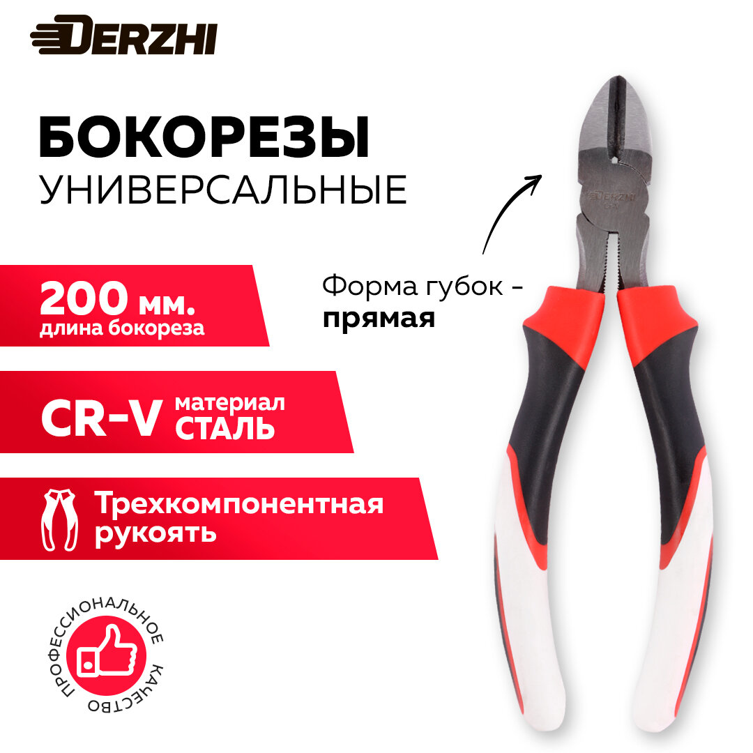 10 цен на Бокорезы DERZHI 200мм, легированная сталь, трёхкомпонентная рукоять