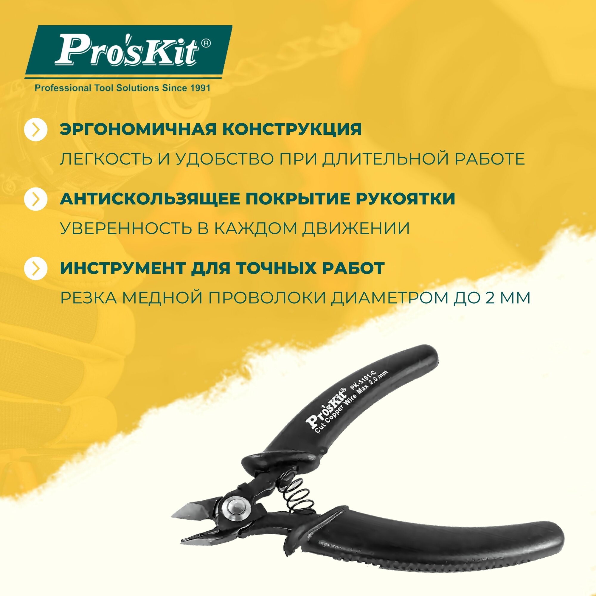 10 цен на Кусачки диагональные 1PK-5101C PROSKIT с возвратной пружиной, 125 мм, резка медной проволоки диаметром до 2 мм