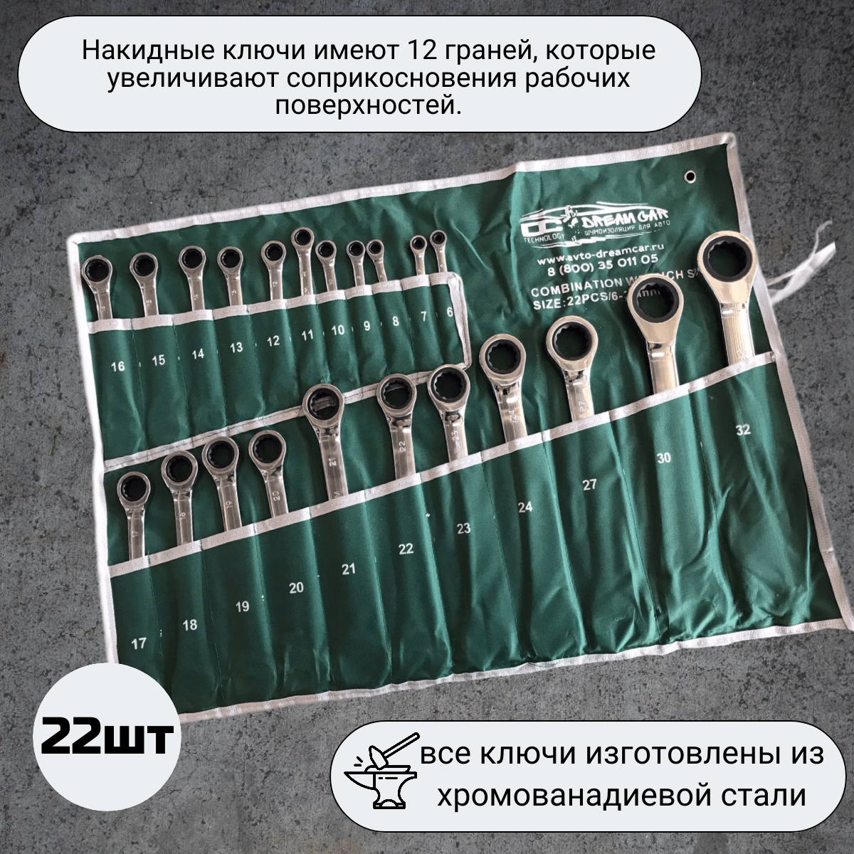 Набор комбинированных ключей с трещоткой, 22 шт, в чехле, 6-32 мм, набор ключей для автомобиля информация:
