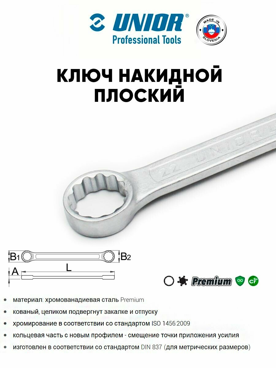UNIOR Ключ накидной плоский 12х13 мм. информация: