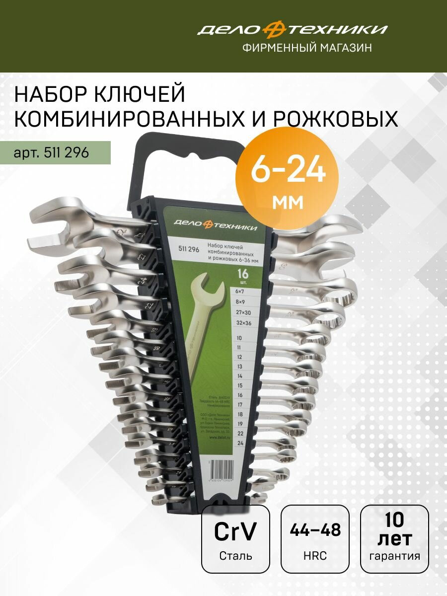 Набор ключей комбинированных и рожковых 16 шт. холдер, Дело Техники, 511296 информация: