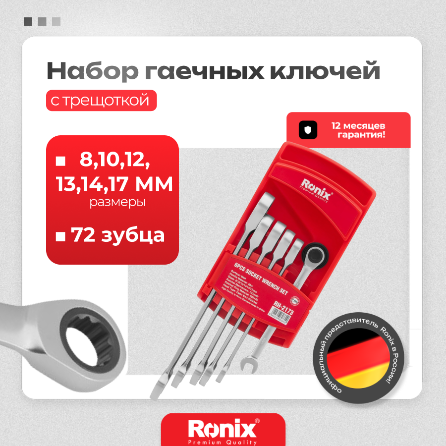 Гаечные ключи с трещоткой Ronix набор 6 шт трещоточные комбинированные информация:
