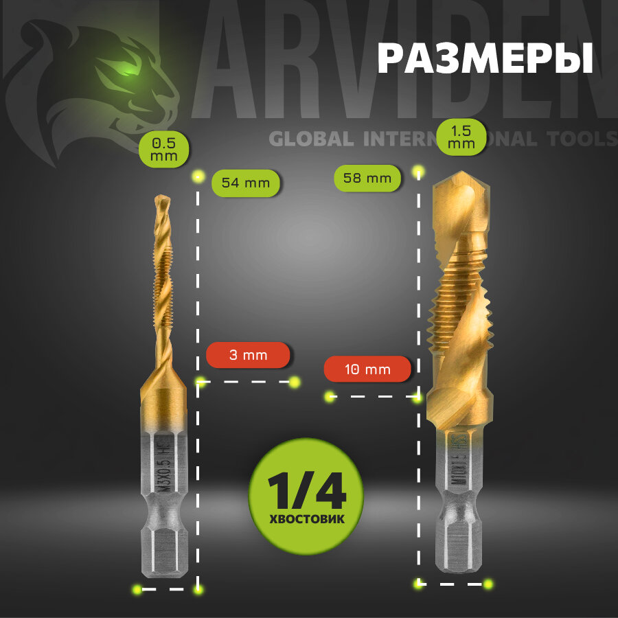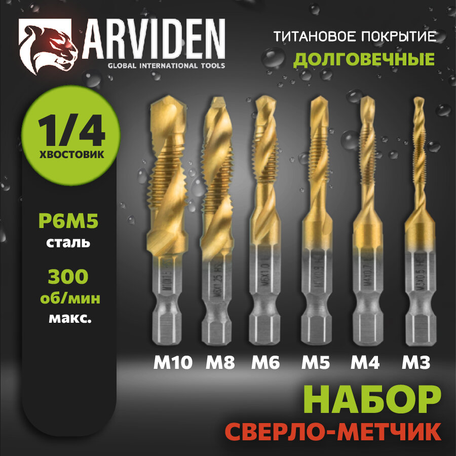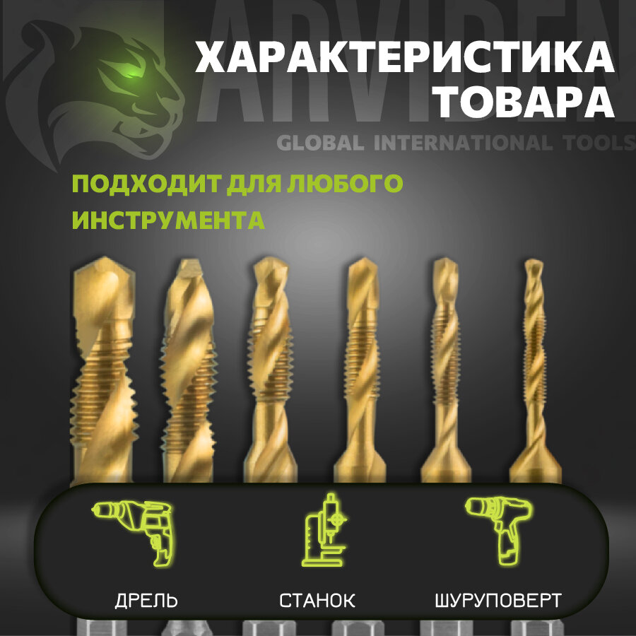 Отзывы на Набор сверл-метчиков с титановым покрытием из быстрорежущей стали, 3-10 мм. 6 штук