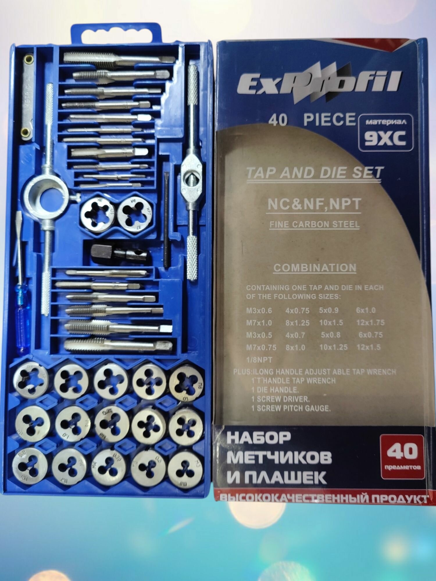 Отзывы на Набор метчиков и плашек, с метрической резьбой 40 штук, в кейсе, серебристый