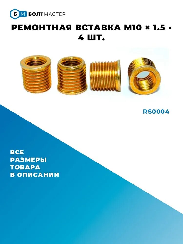 Отзывы на Ремонтная вставка 4 шт. внутр. диаметр М10х1.5 наружн. диаметр M14x1.5