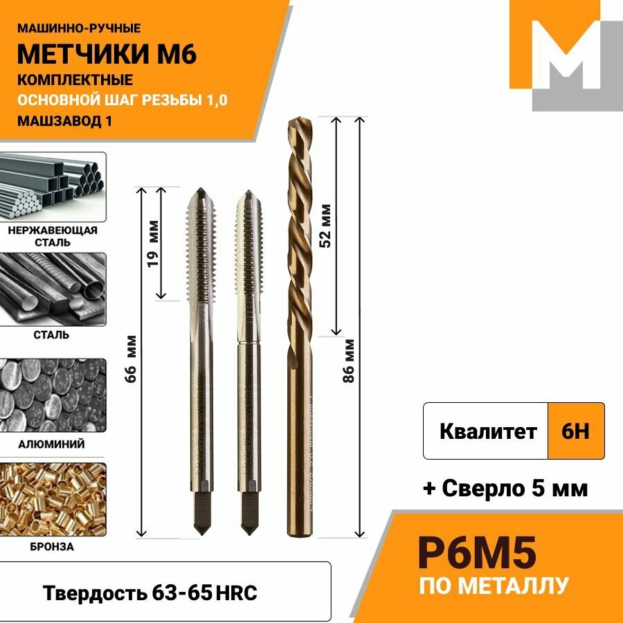 Метчик М6 Р6М5 комплект из 2 шт + сверло 5.0 мм р6м5к5 информация: