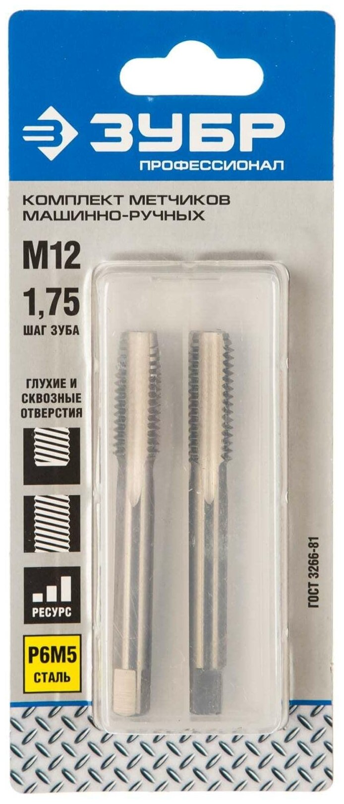 Отзывы на Метчики М12x1,75 Зубр сталь P6M5, комплект машинно-ручные, для нарезания метрической резьбы 4-28007-12-1.75-H2