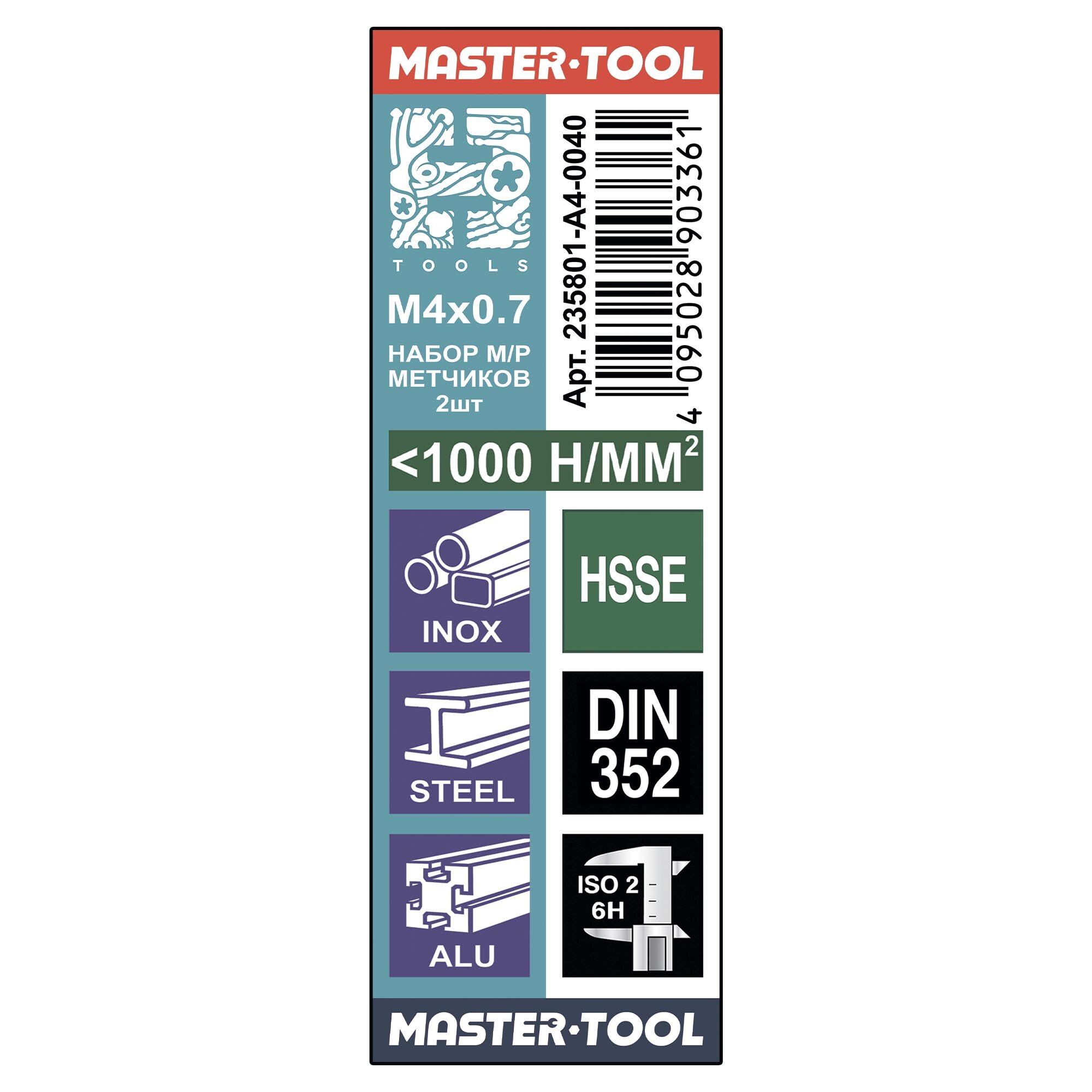 10 цен на Набор метчиков 2шт H-Tools М4х0,7 DIN352 HSSE 6h 235801-A4-0040