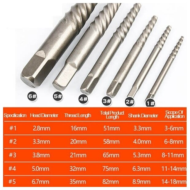 Отзывы на Экстракторы обломанных болтов, 6 штук, 3-22 мм, набор экстракторов