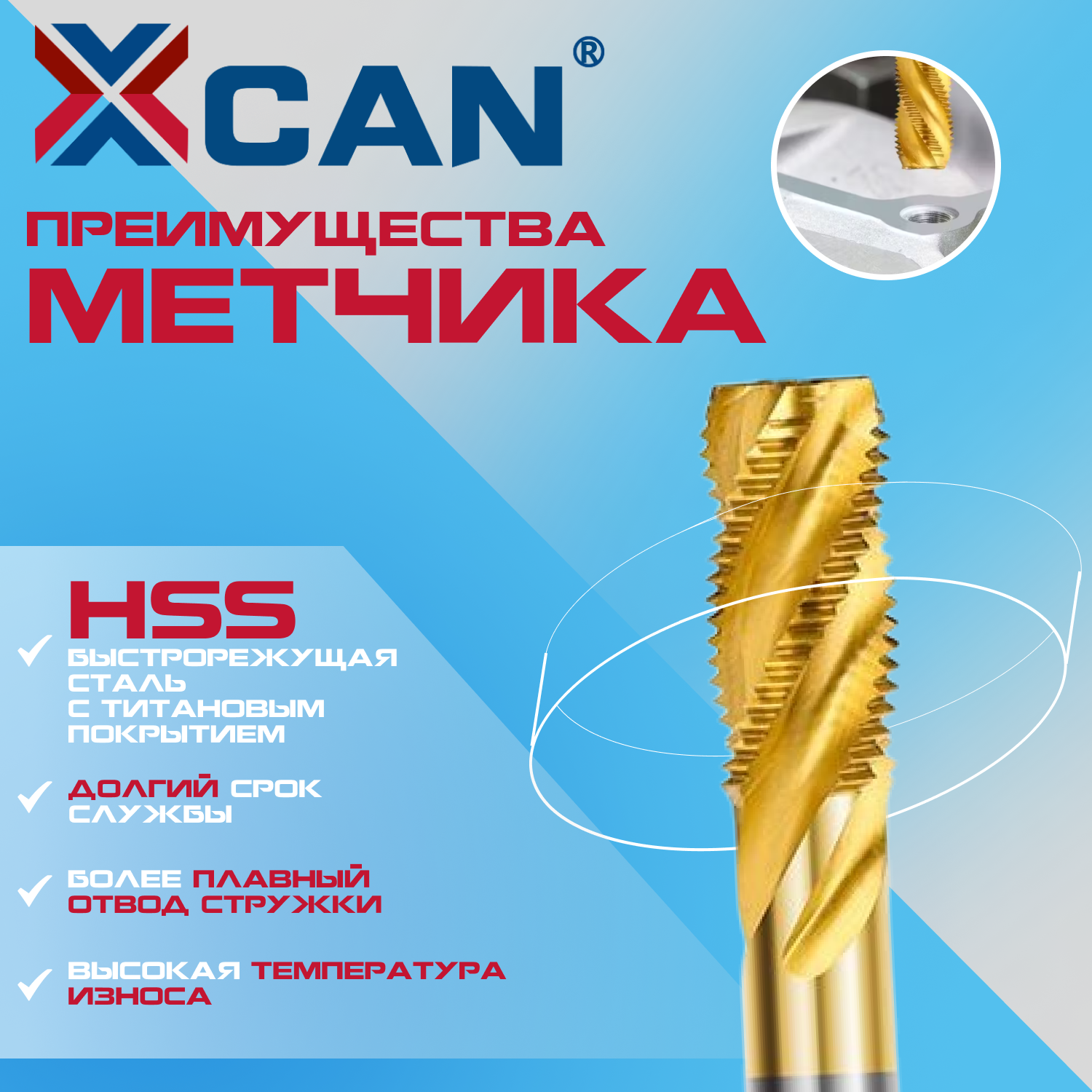 10 цен на Метчик машинный XCAN HSS M14х1,5 с винтовой канавкой, титановое покрытие