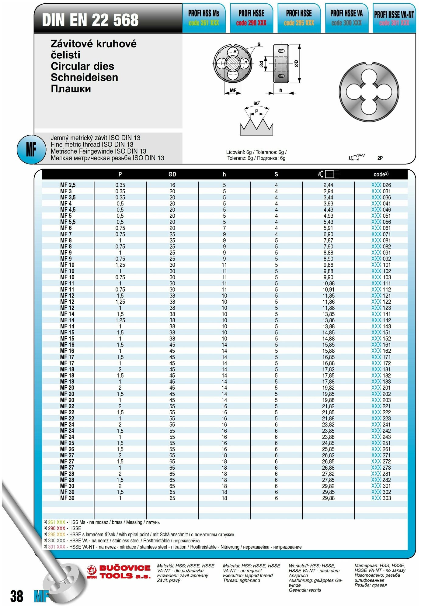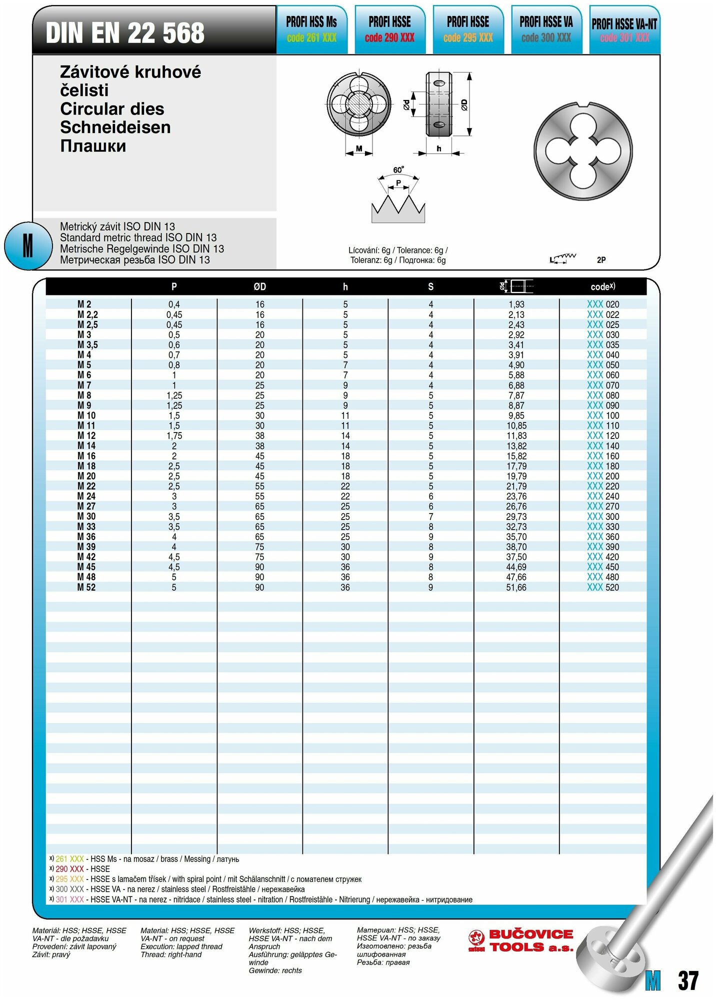 Плашка Bucovice(CzTool) M6x1,0 HSSE 60° 6g 20x7мм DIN EN22568 290060 информация: