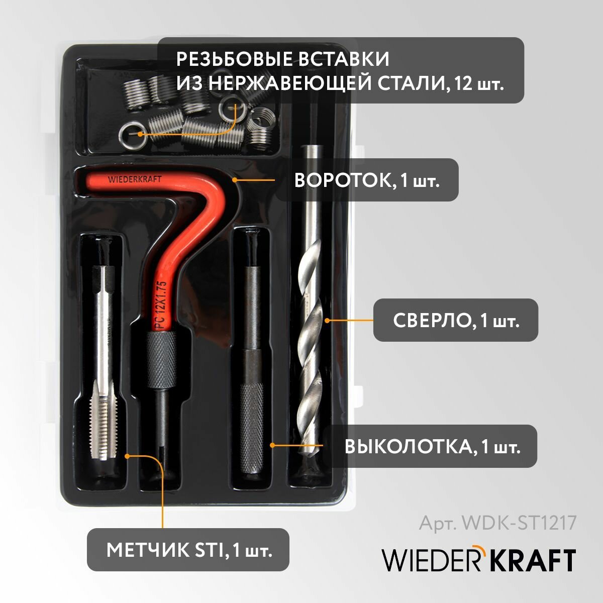 Набор для восстановления резьбы M12X1,75, 16 предметов WIEDERKRAFT WDK-ST1217 информация: