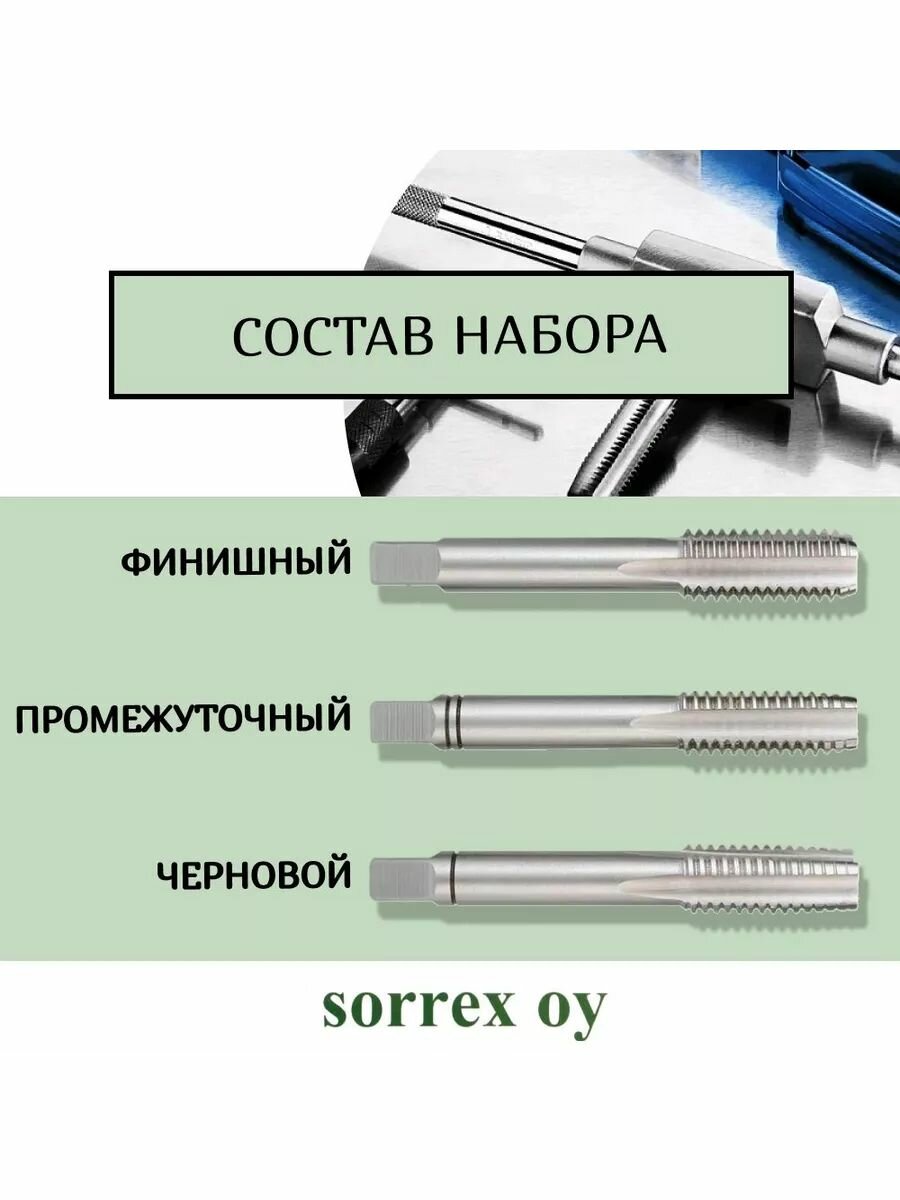 10 цен на Метчики ручные M2 набор 3 шт из быстрорежущей стали DIN 352 6H для нарезания метрической резьбы по металлу, глухие и сквозные отверстия 00105080-S Sorrex