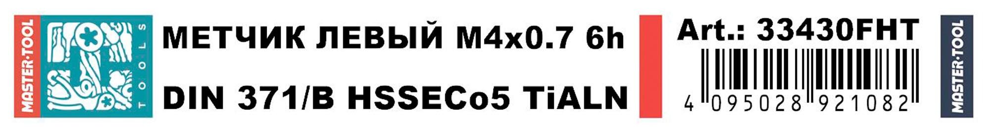 Метчик левый машинный H-Tools HSSE-TiALN DIN371 6h М4х0,7 33430FHT информация: