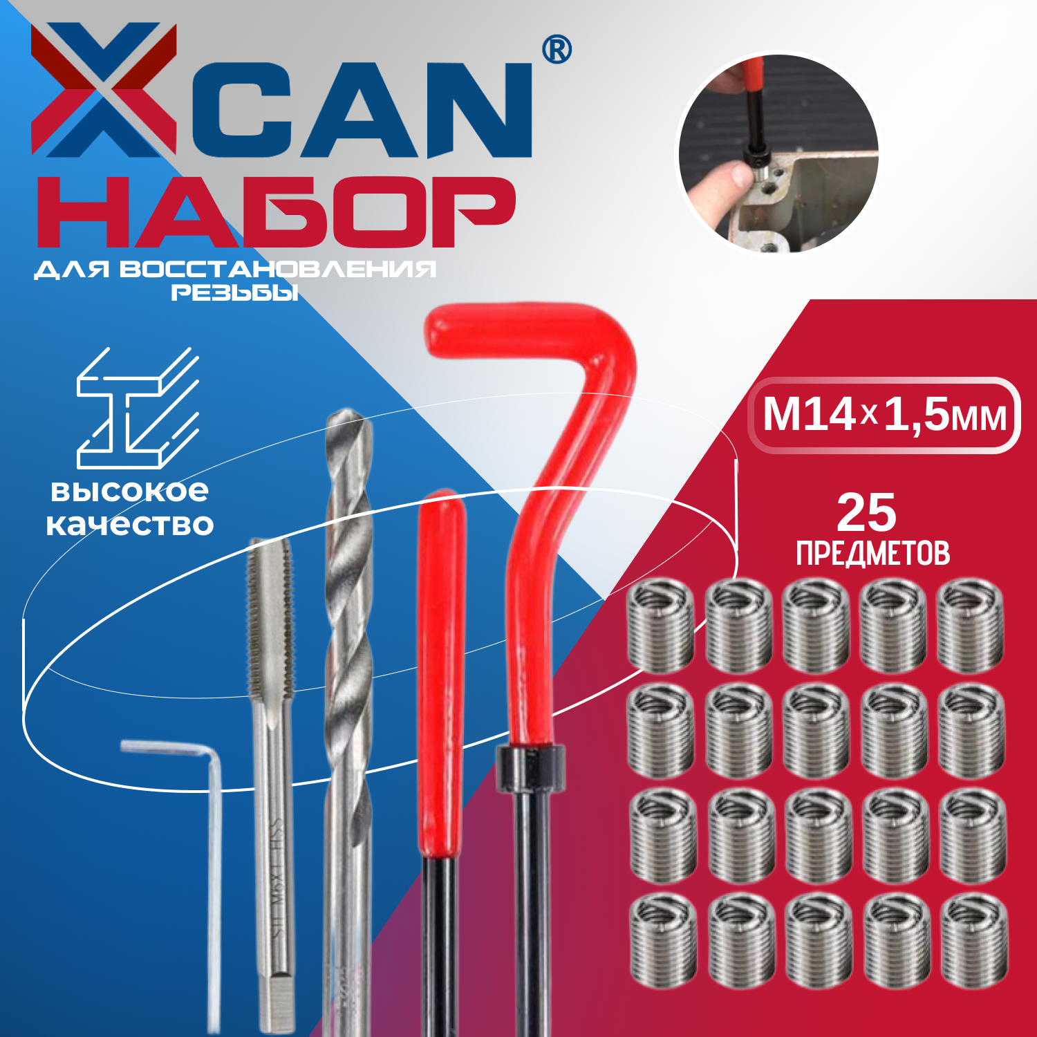 Набор для восстановления резьбы XCAN, М14х1,5 мм, 25 предметов информация: