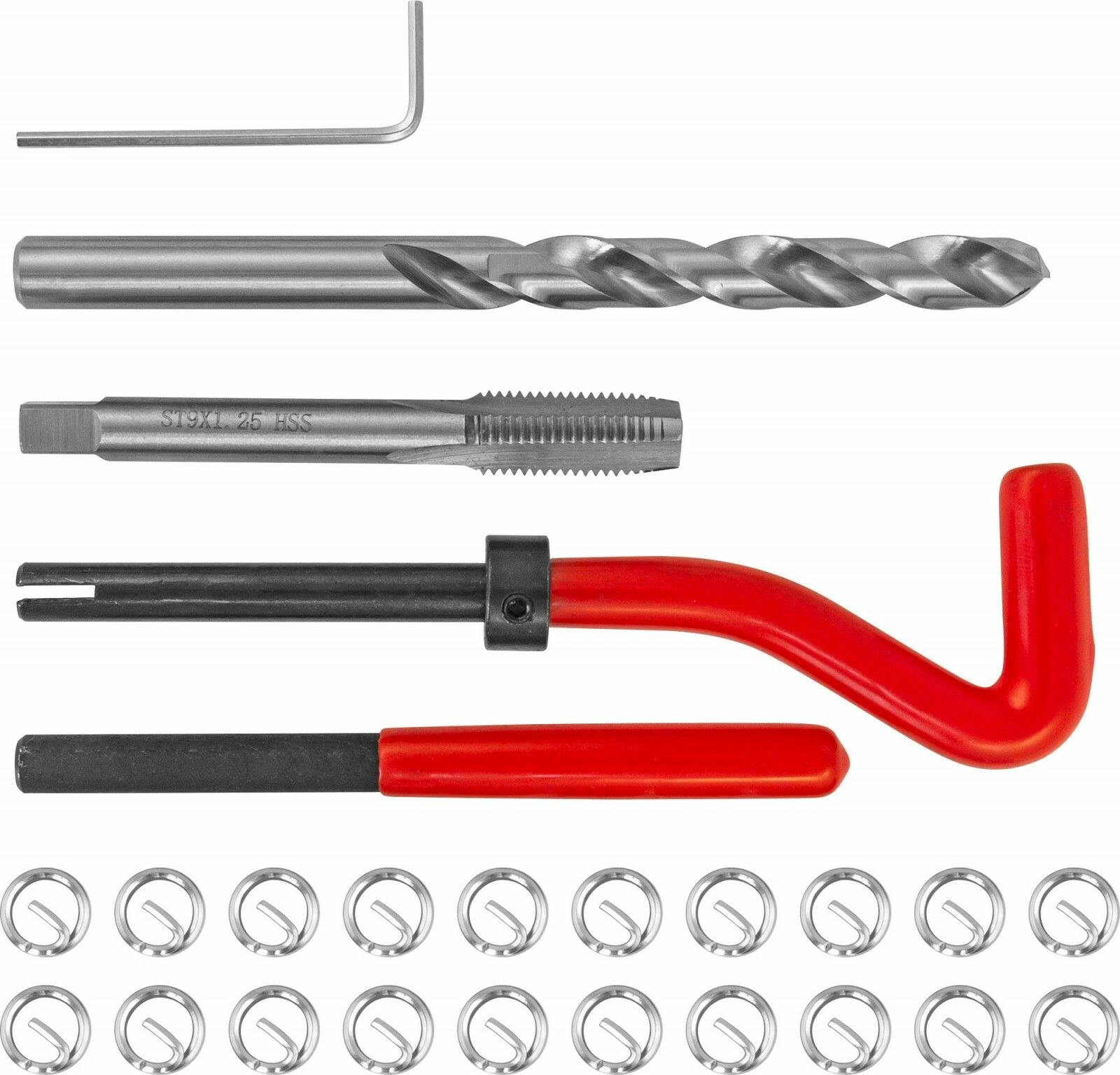 Набор для восстановления резьбы M9x1.25, 25 предметов TRIS9125 Thorvik, 53184 информация: