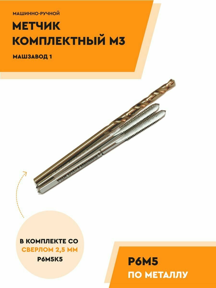 Метчик М3 Р6М5 комплект из 2 шт + сверло 2.5 мм р6м5к5 информация:
