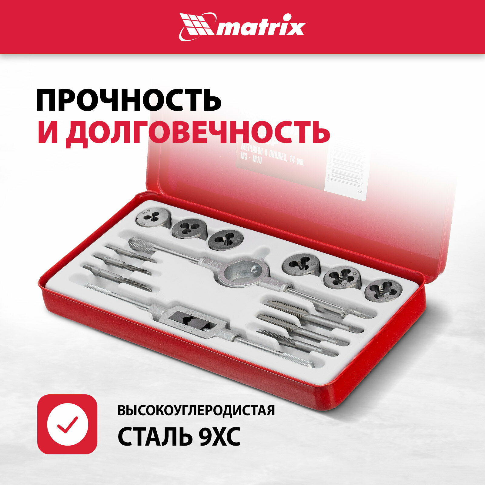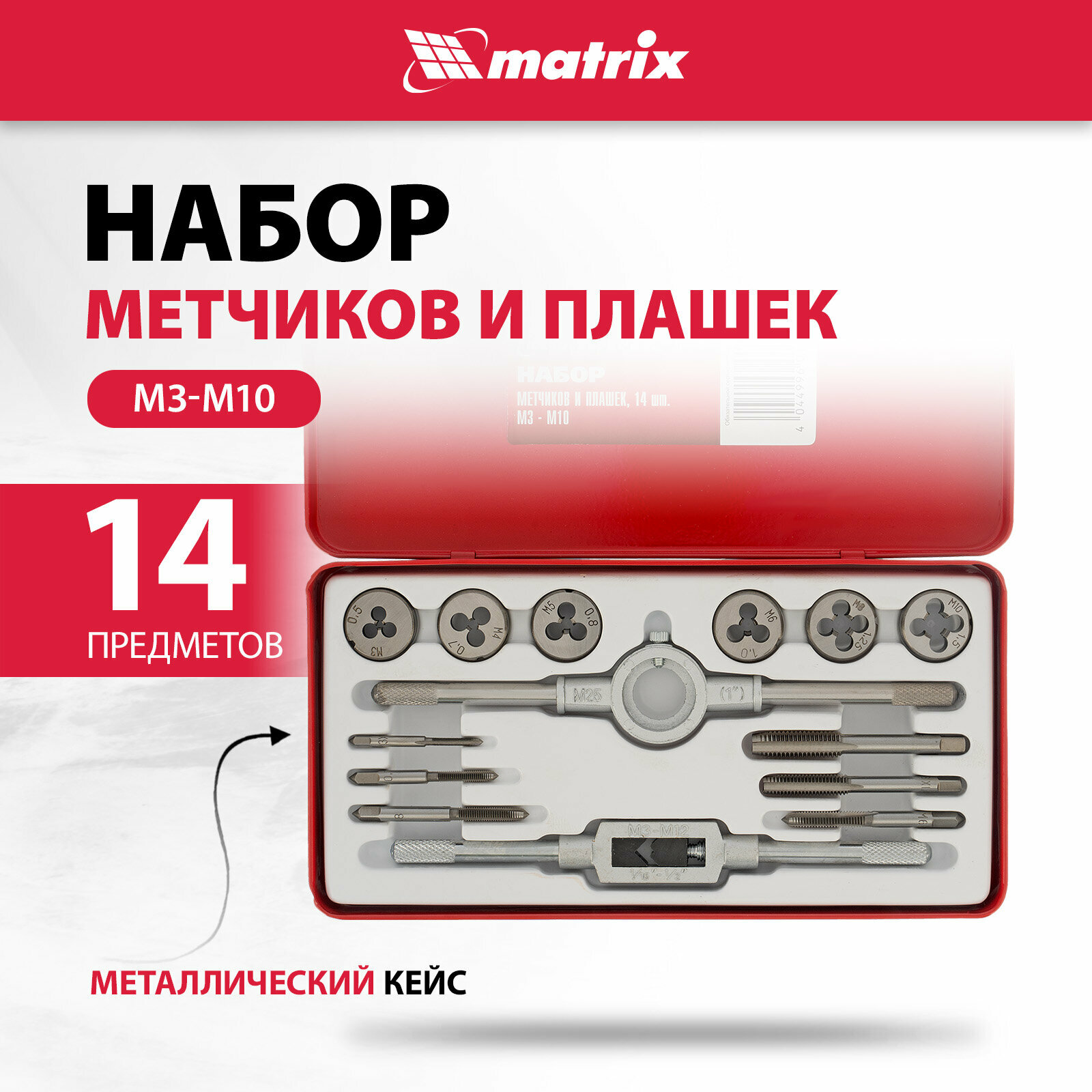 10 цен на Набор метчиков и плашек Matrix М3 - М10, 14 предметов 77345