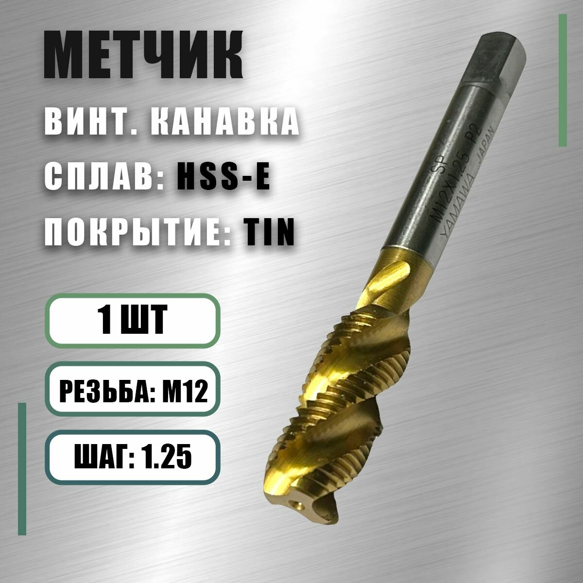 Метчик М 12x1,25 Yamawa HSS-E TIN винт. канавка информация: