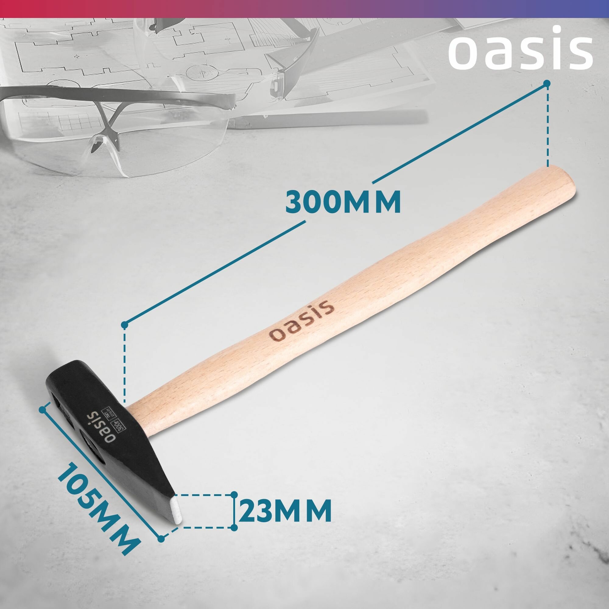 Молоток слесарный с деревянной рукояткой Oasis 300 г 103010603006 информация:
