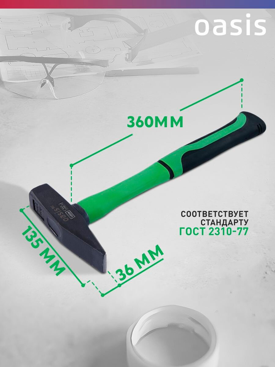 Отзывы на Молоток слесарный с обрезиненной фибергласовой рукояткой Oasis Eco 1000 г_103010602007