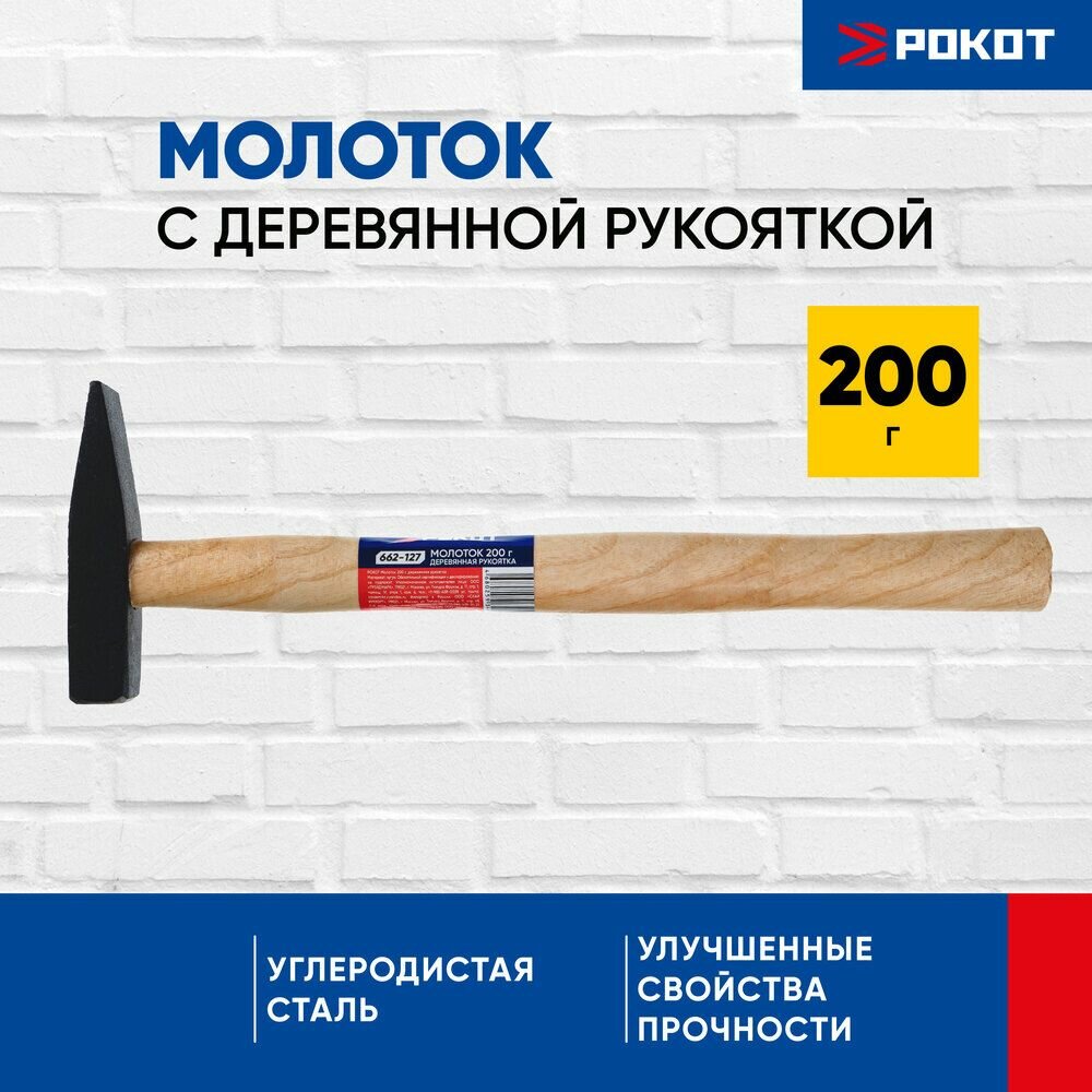 Молоток слесарный рокот, 200гр, квадратный боек, деревянная рукоятка информация: