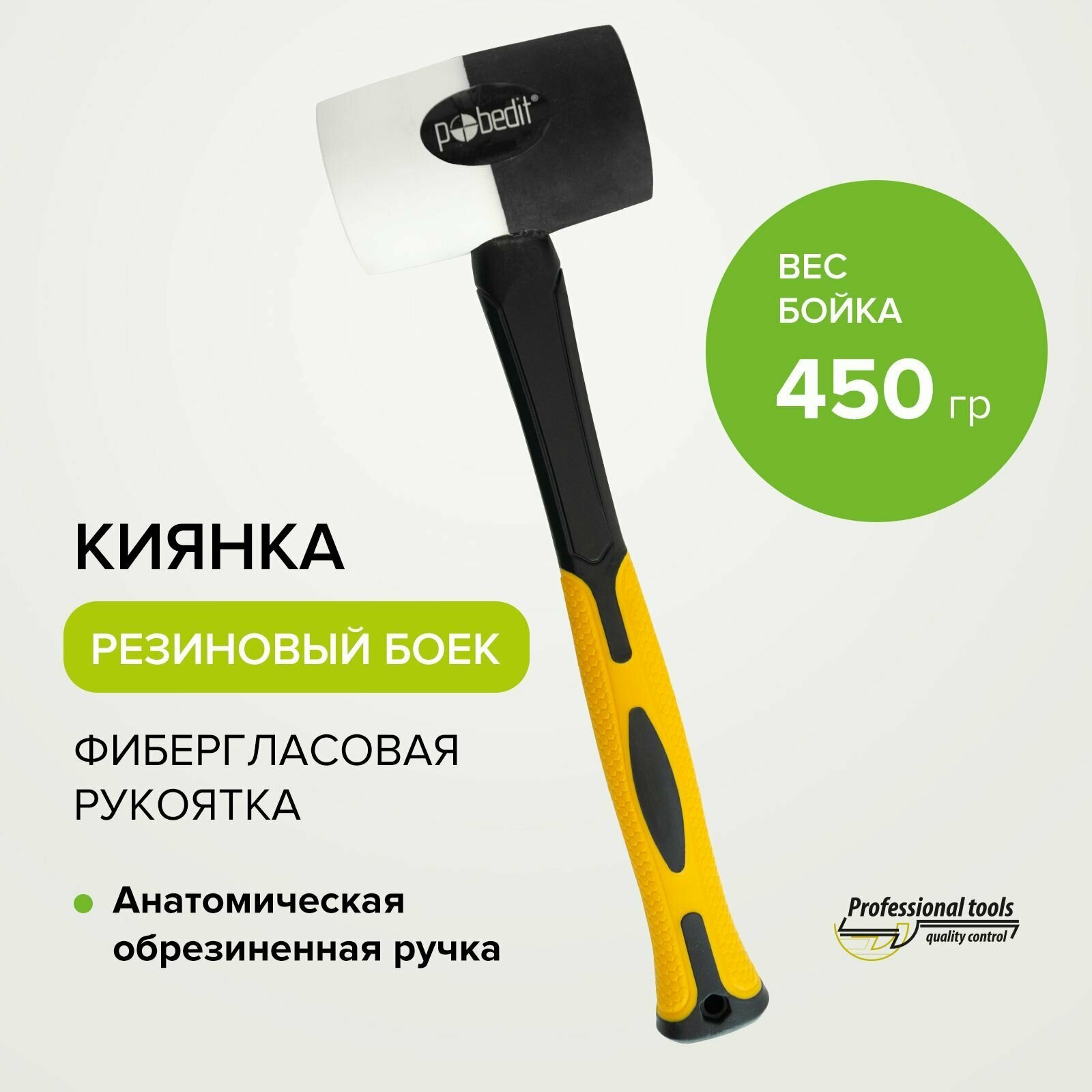 Киянка резиновая черно-белая с фиберглассовой рукояткой 450 г, Pobedit информация:
