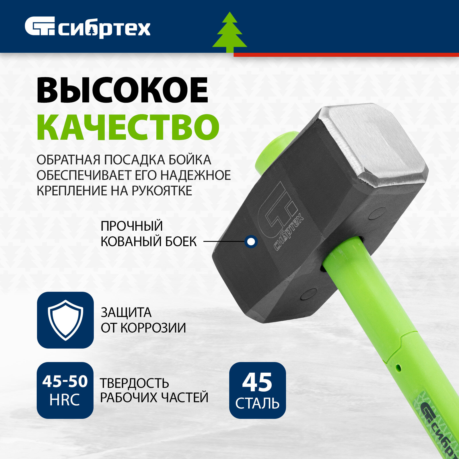 Кувалда Сибртех, 10000 г, фибергласовая обрезиненная рукоятка, 10901 информация: