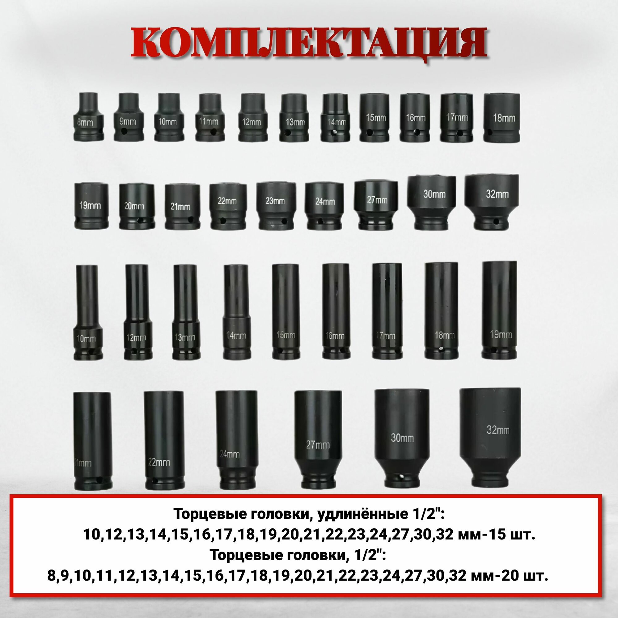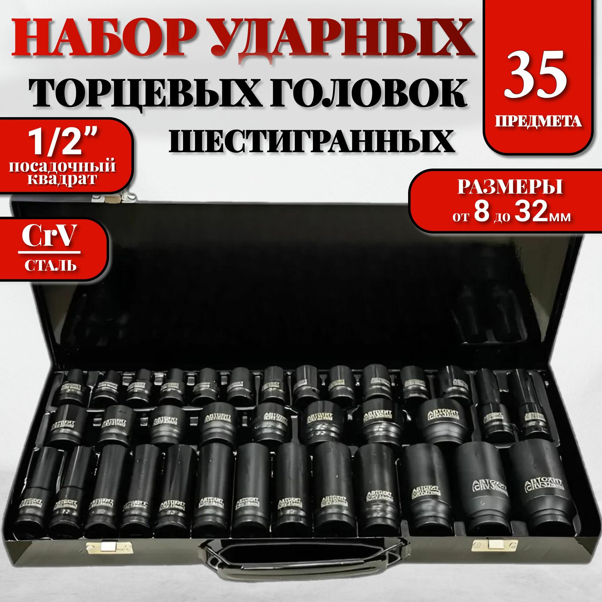 Набор головок ударных 1/2" - мм 35 пр. (8-32 мм) в кейсе информация: