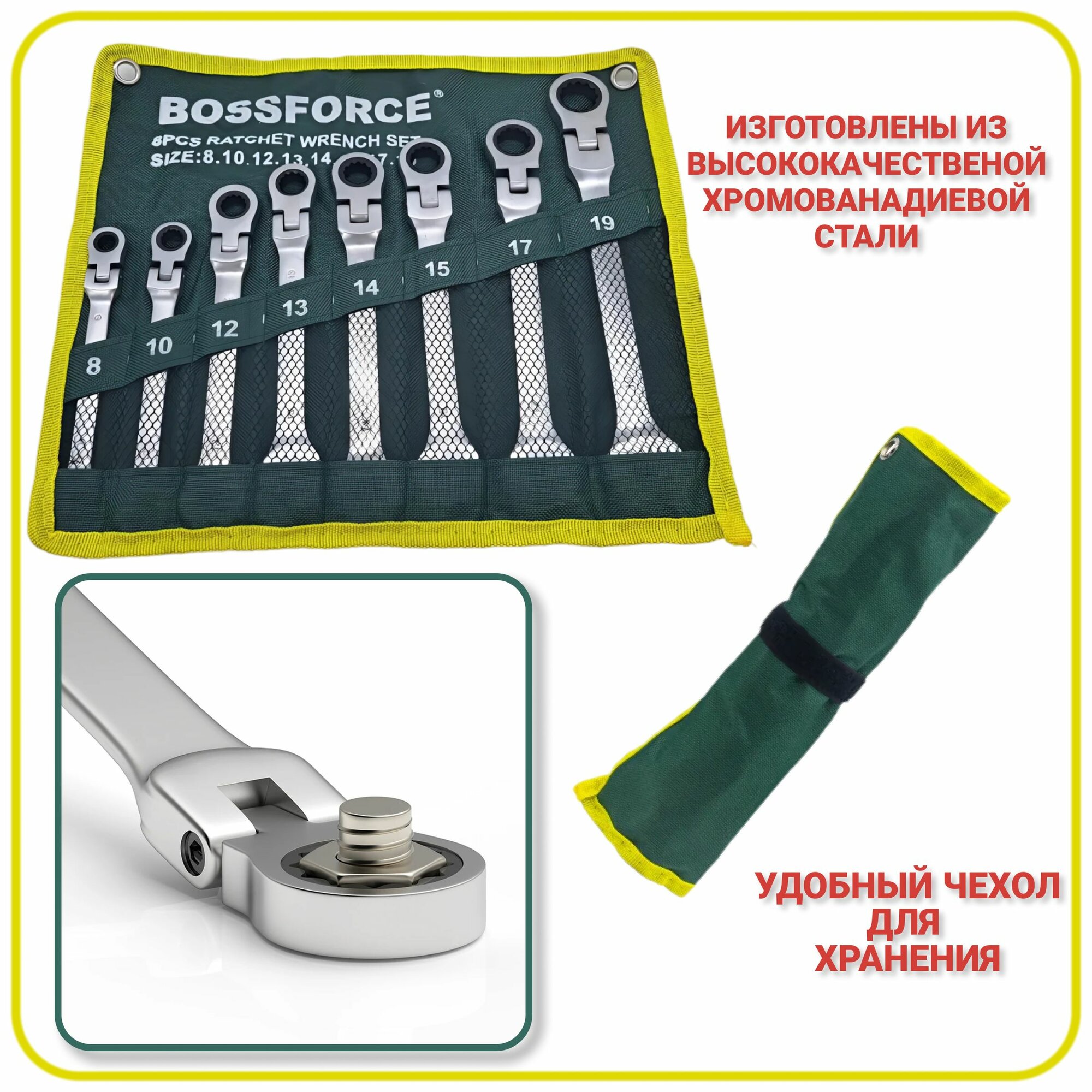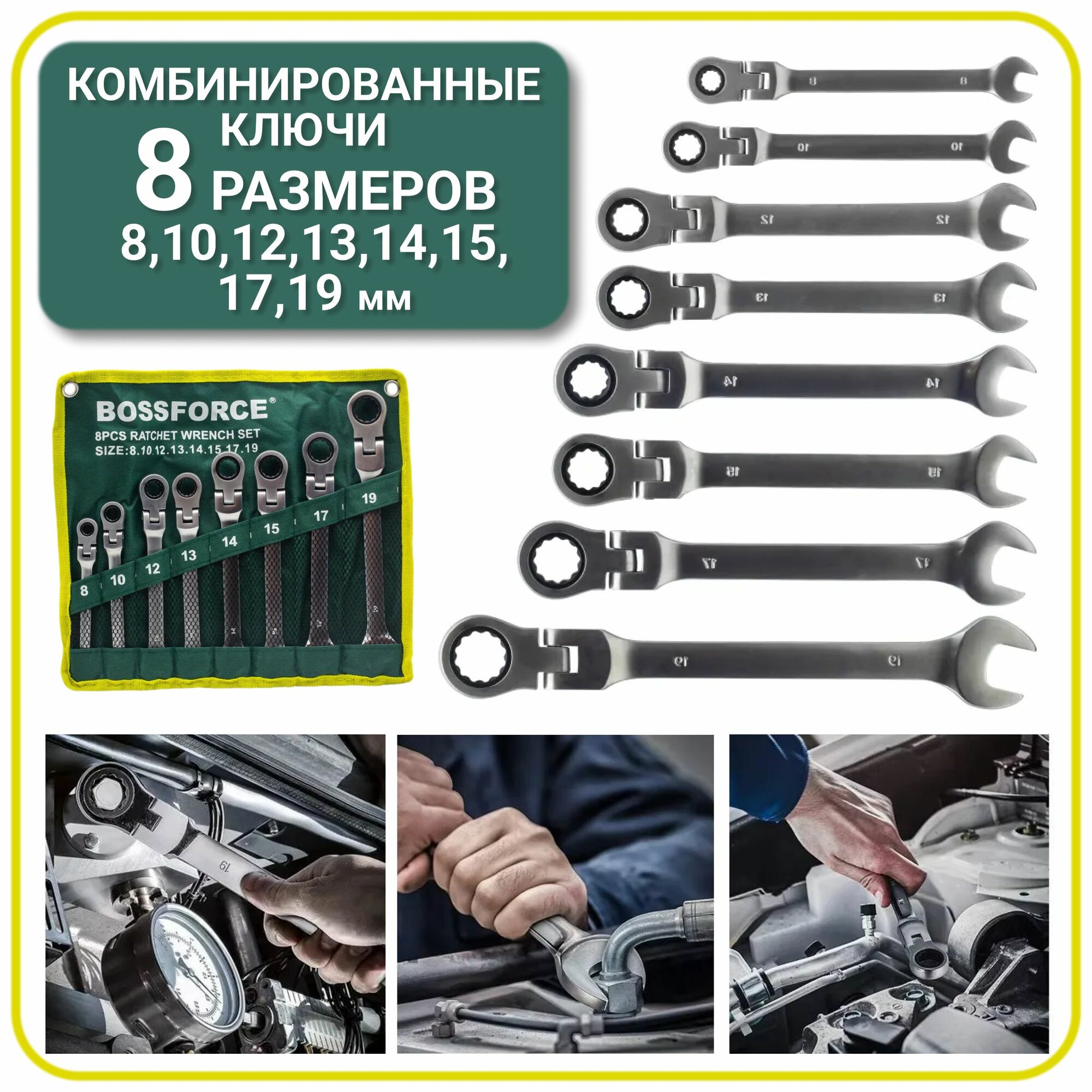 10 цен на Набор ключей комбинированных трещоточных с шарниром 8 предметов