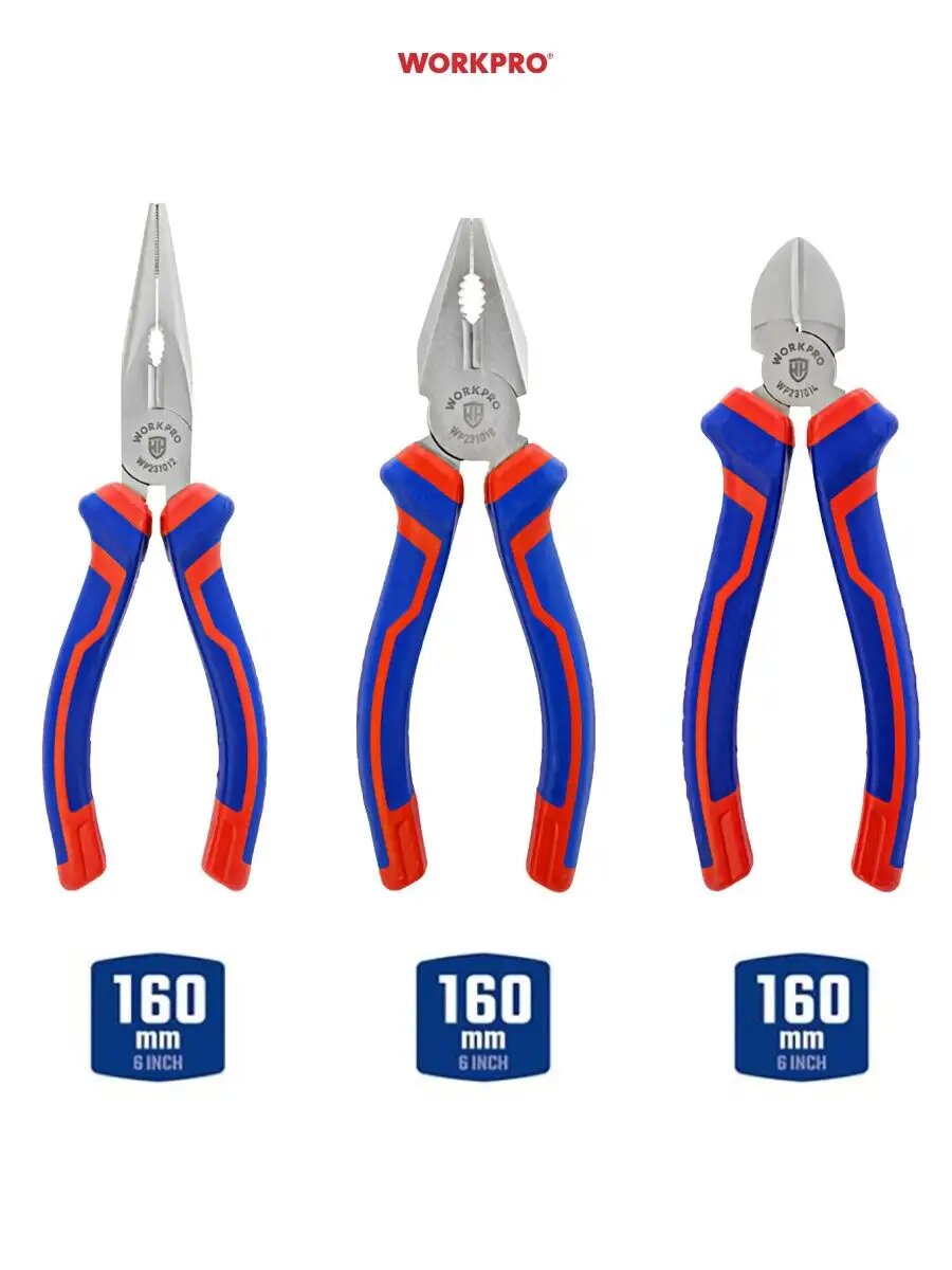 10 цен на Набор инструментов пассатижи, бокорезы, длинногубцы WP201008, WORKPRO #WP201008