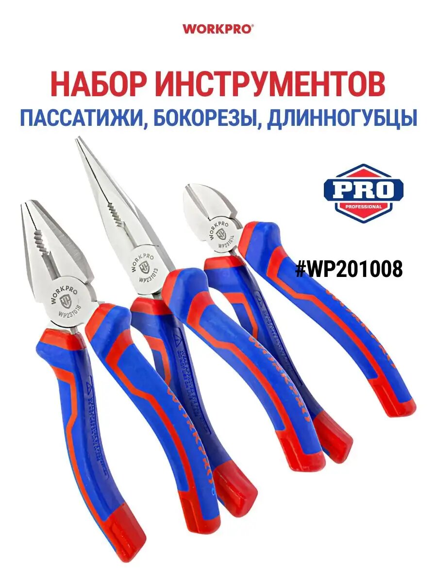 Набор инструментов пассатижи, бокорезы, длинногубцы WP201008, WORKPRO #WP201008 информация: