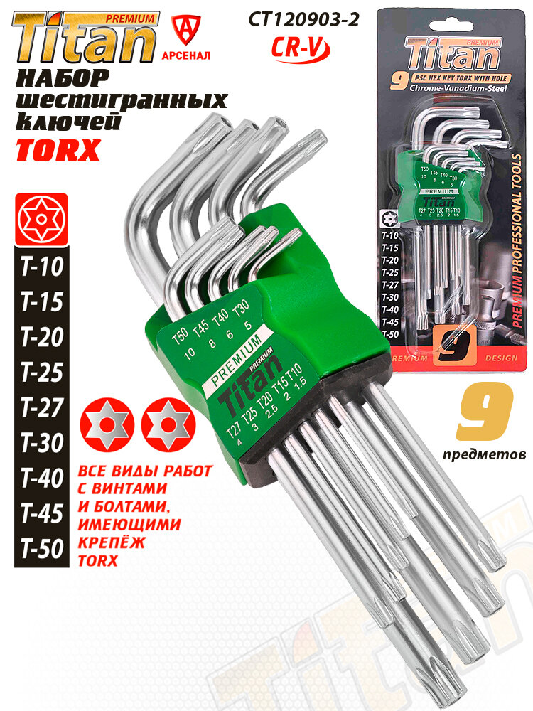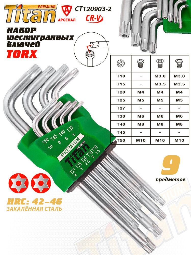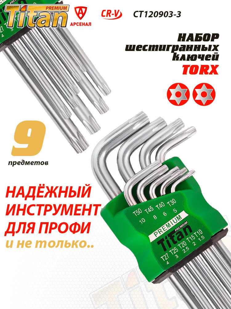 10 цен на Набор шестигранников TITAN Premium 9 шт Torx (звёздочка) средний 170 мм (Т10-Т50), CT120903-2