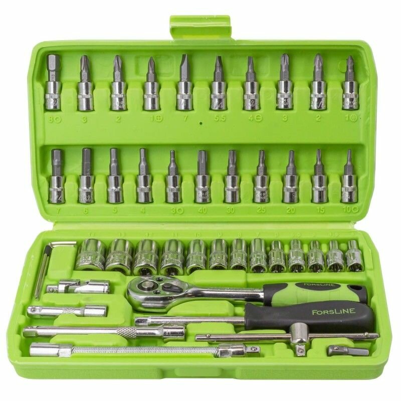 10 цен на Набор инструмента 46 предметов, 1/4' (6-гран.), 4-14 мм, в кейсе