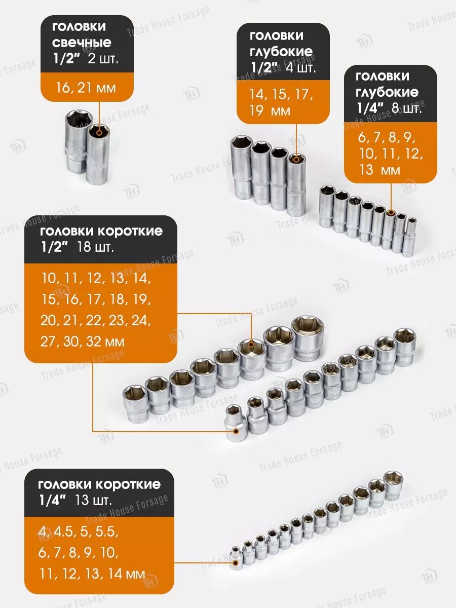 FORSTIME Набор инструментов 202пр. 1/4", 3/8", 1/2" (6гр.) FT-42022-5(56911) 20 662 ₽