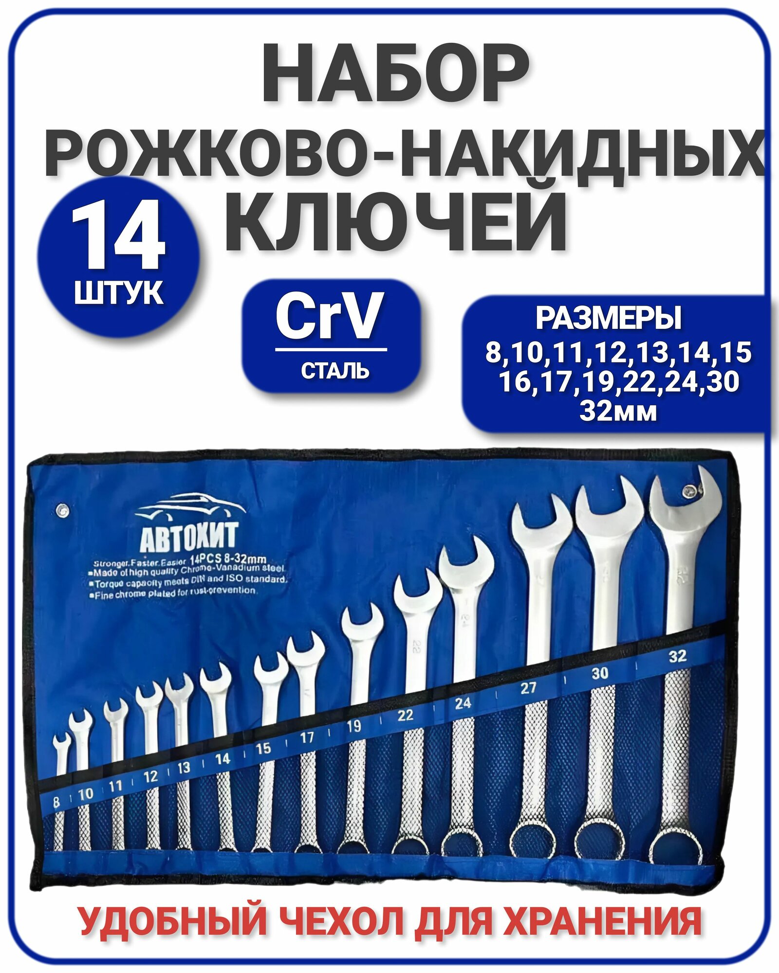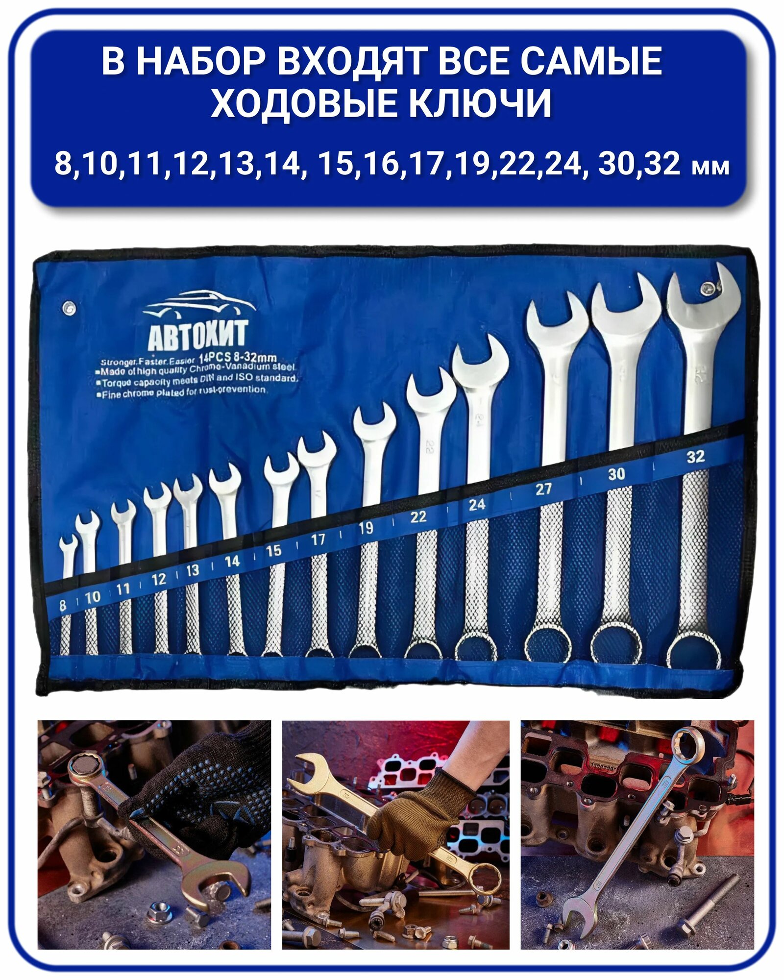 Набор комбинированных ключей АвтоХит, 14 инструментов, 8-32мм информация: