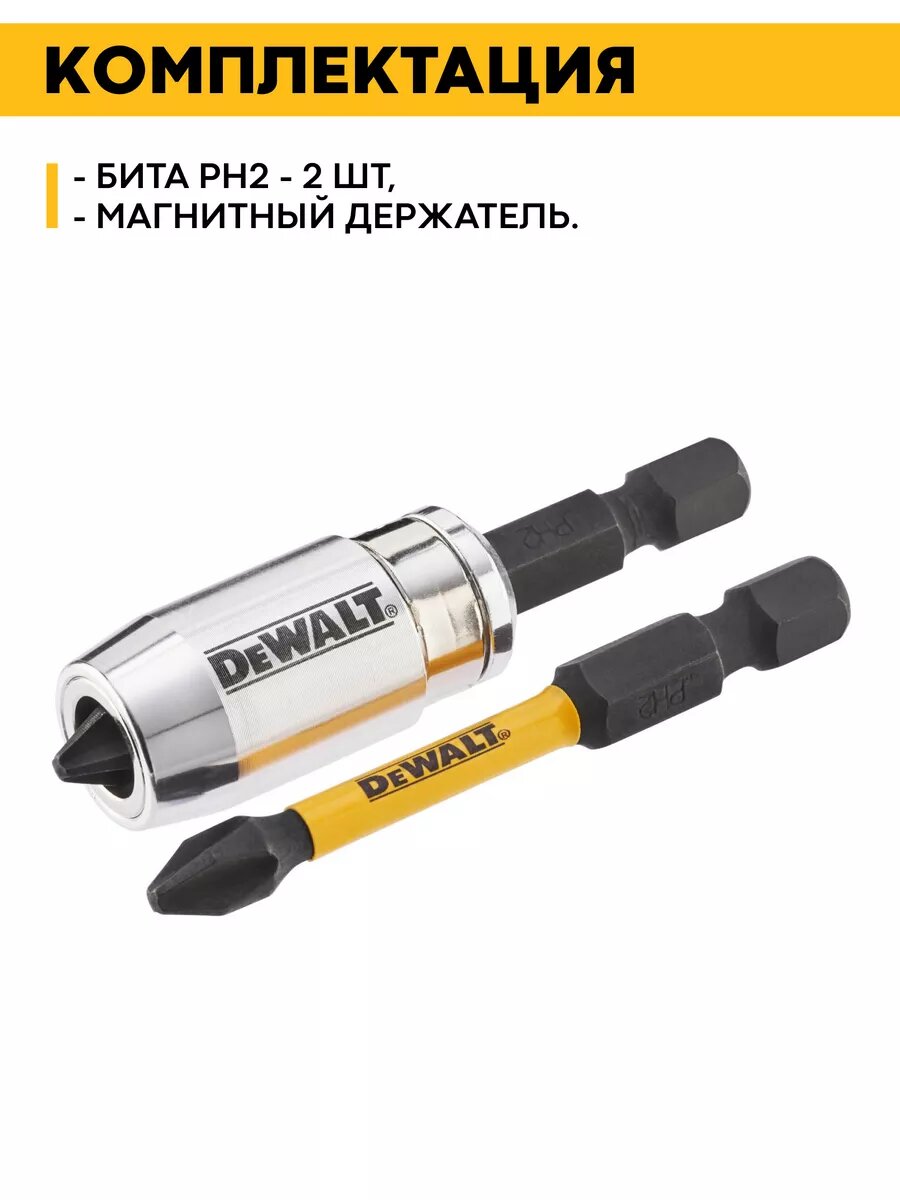 Набор бит PH2x57мм 2шт с магнитным держателем DT70536T информация: