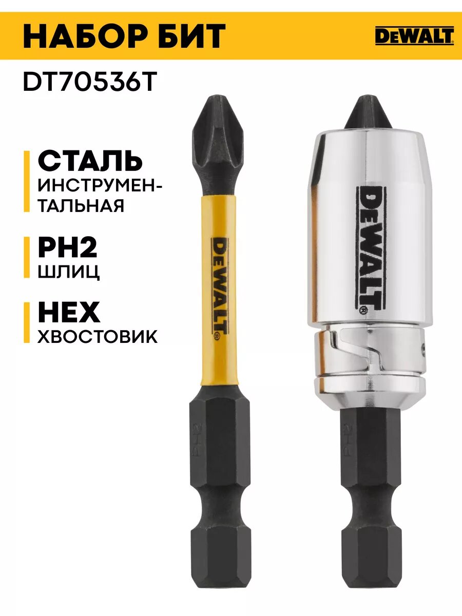 Мы выбрали 10 лучших цен на Набор бит PH2x57мм 2шт с магнитным держателем DT70536T. Перед тем как купить Набор бит PH2x57мм 2шт с магнитным держателем DT70536T посмотрите найденные предложения из Яндекс Маркета и других сайтов на основе XML фидов.
