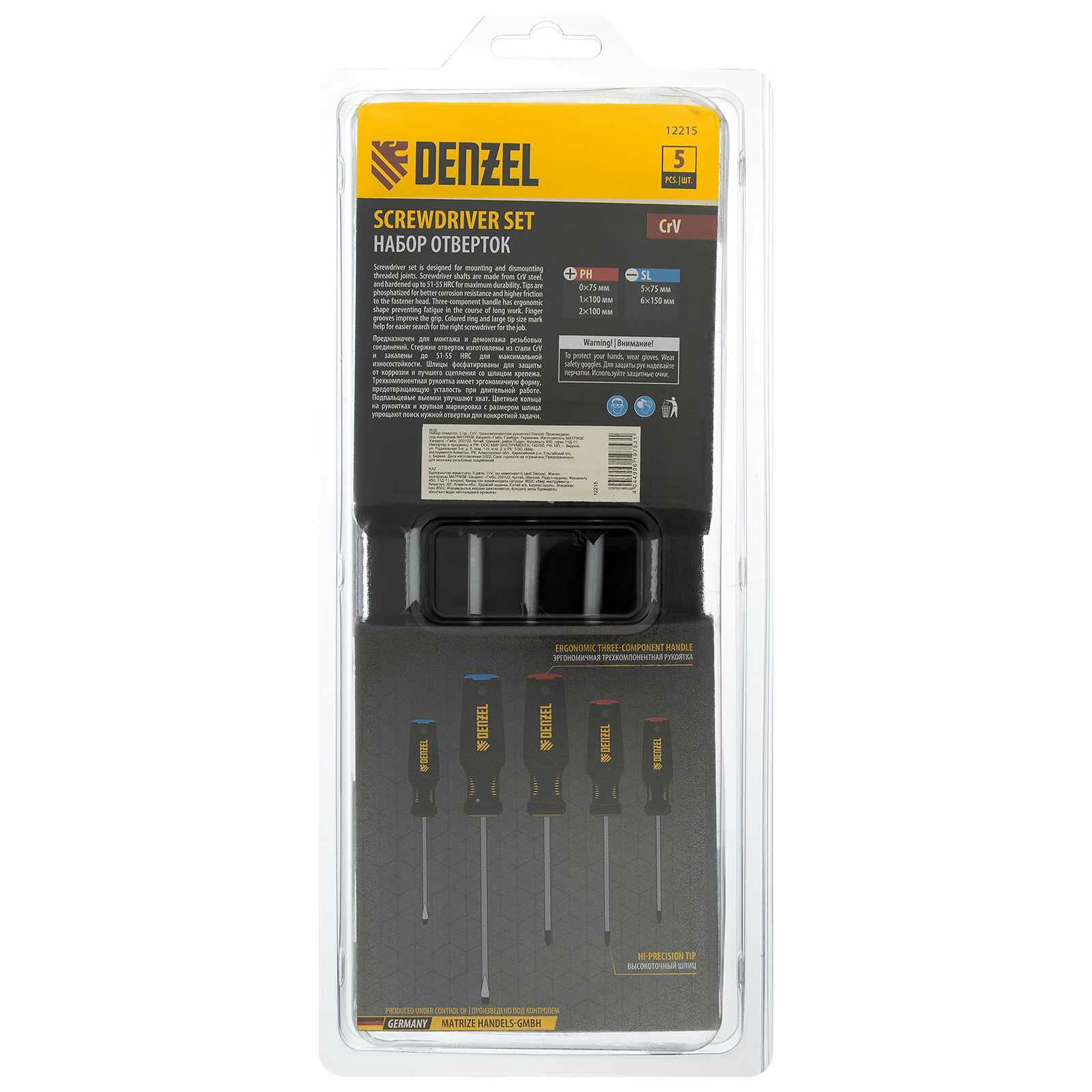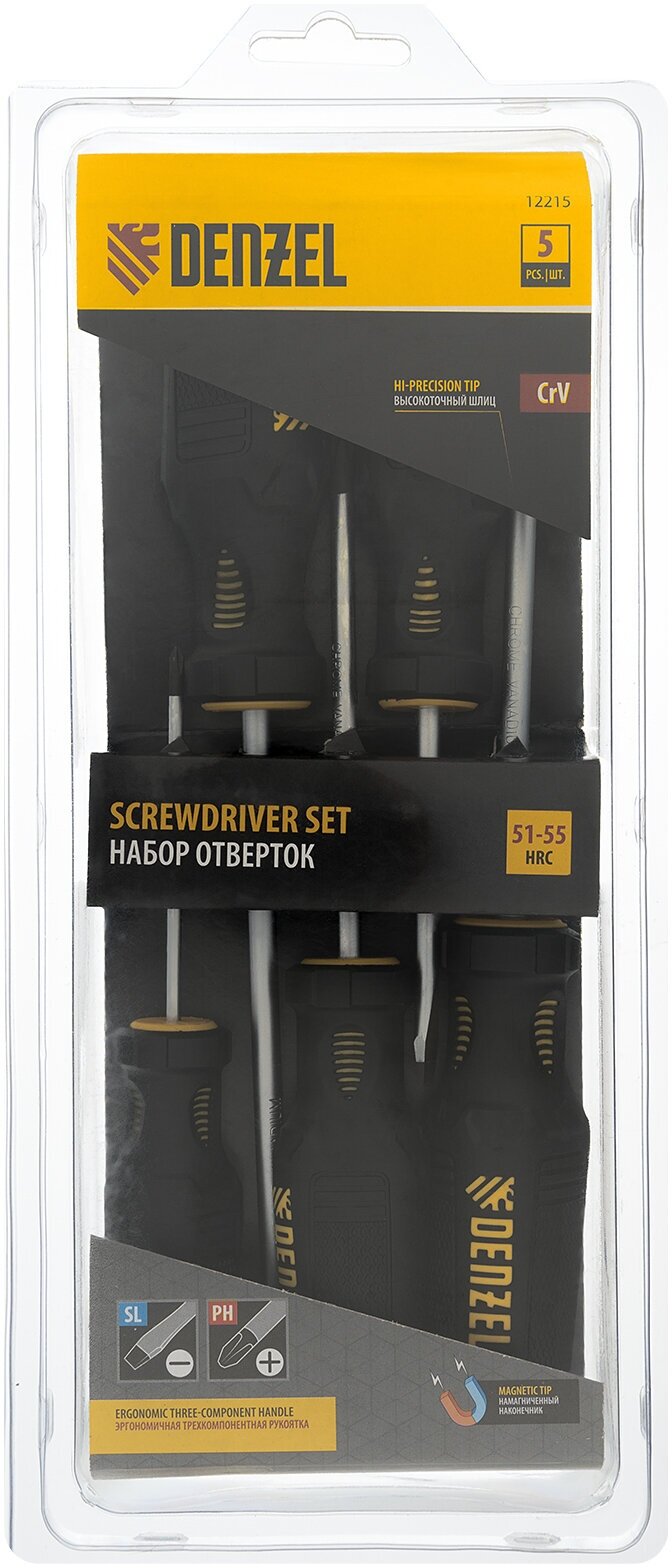 Набор отверток, 5 пр, CrV, трехкомпонентная рукоятка Denzel (12215) информация: