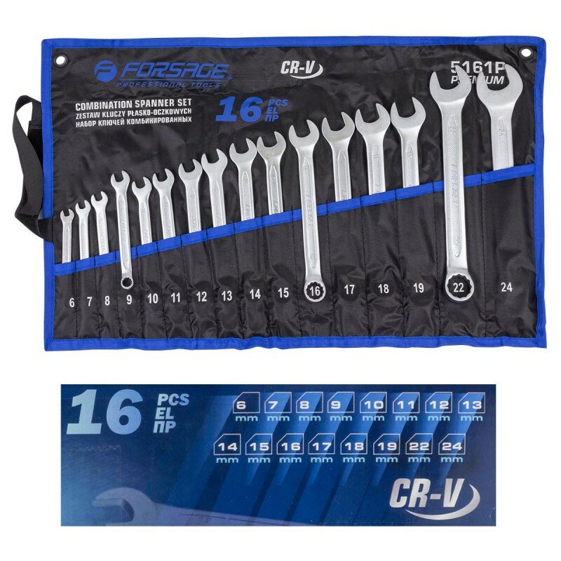 Набор ключей комбинированных 16 предметов Forsage, хромованадиевая сталь, в чехле информация: