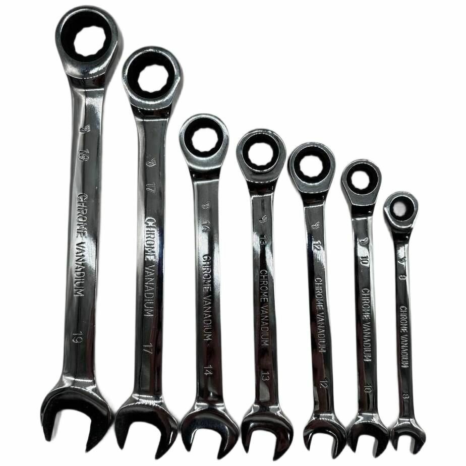 Набор комбинированных трещоточных ключей 7шт, 8-19мм, Chrome-vanadium, информация: