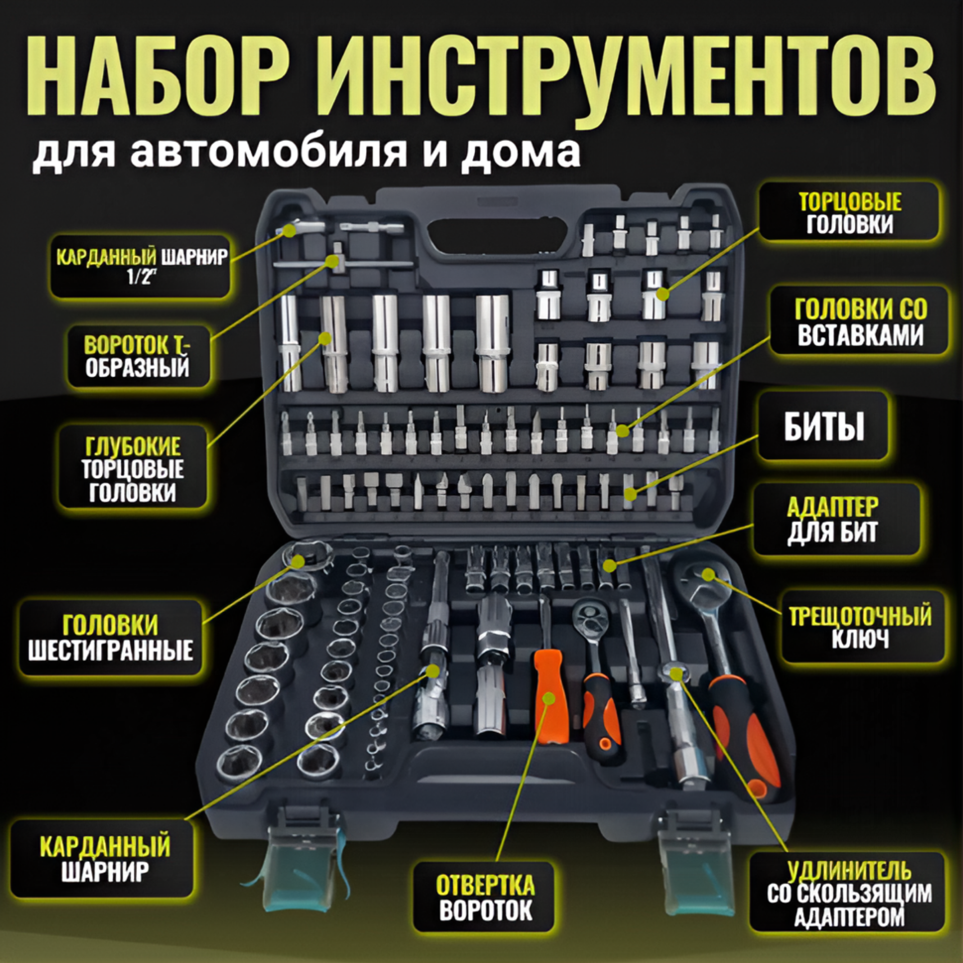 Отзывы на Набор инструментов для автомобиля и дома мужской с трещоткой и набором ключей мужской, 108 предметов