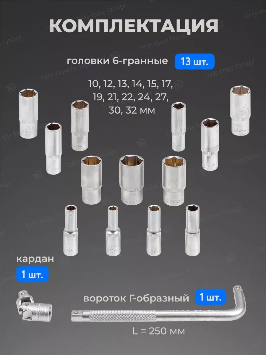 Набор инструментов Forsage ударных 26 предметов, 3/4" 1" F-68262-9MPB(28179) 18 198 ₽