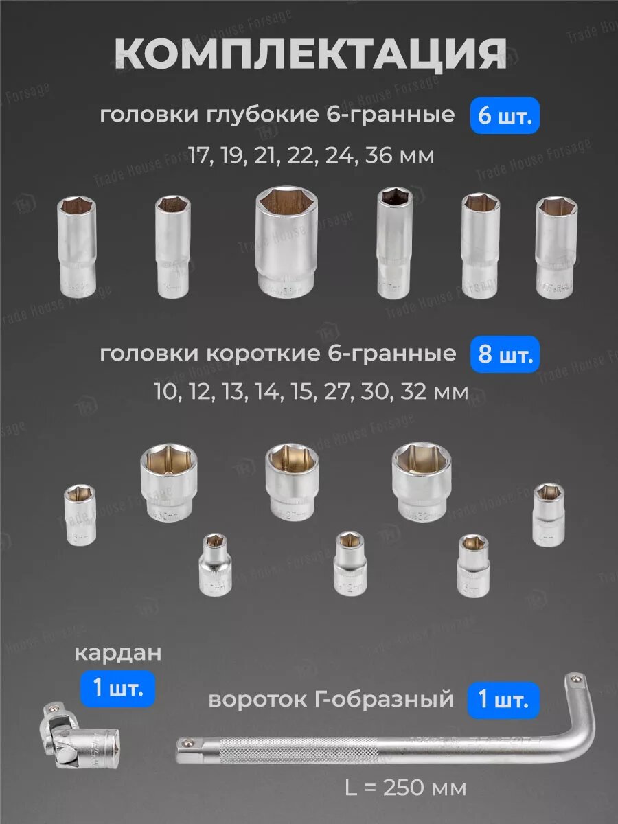 Набор инструментов Forsage ударных 26 предметов, 3/4" 1" F-68262-9MPB(28179) 18 198 ₽