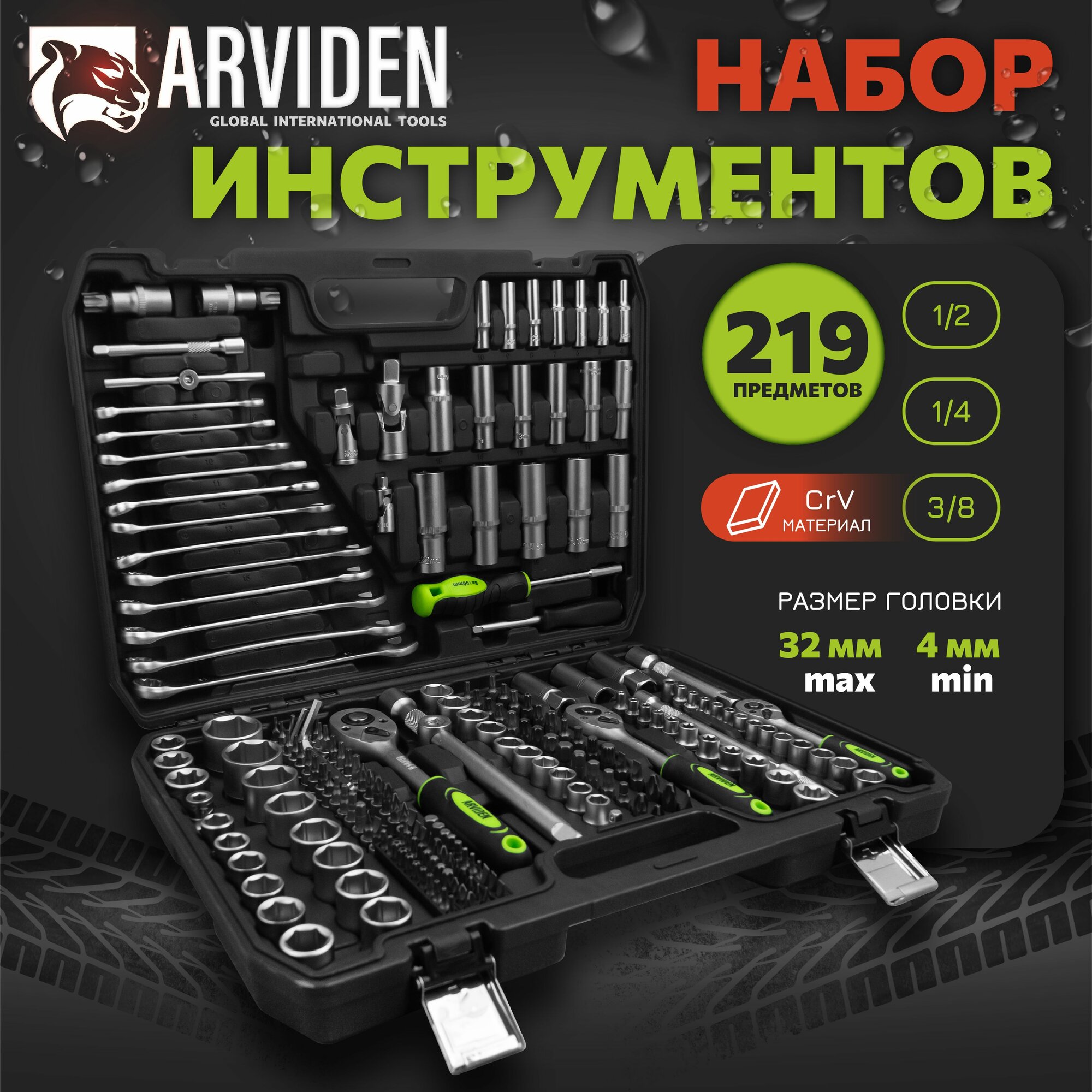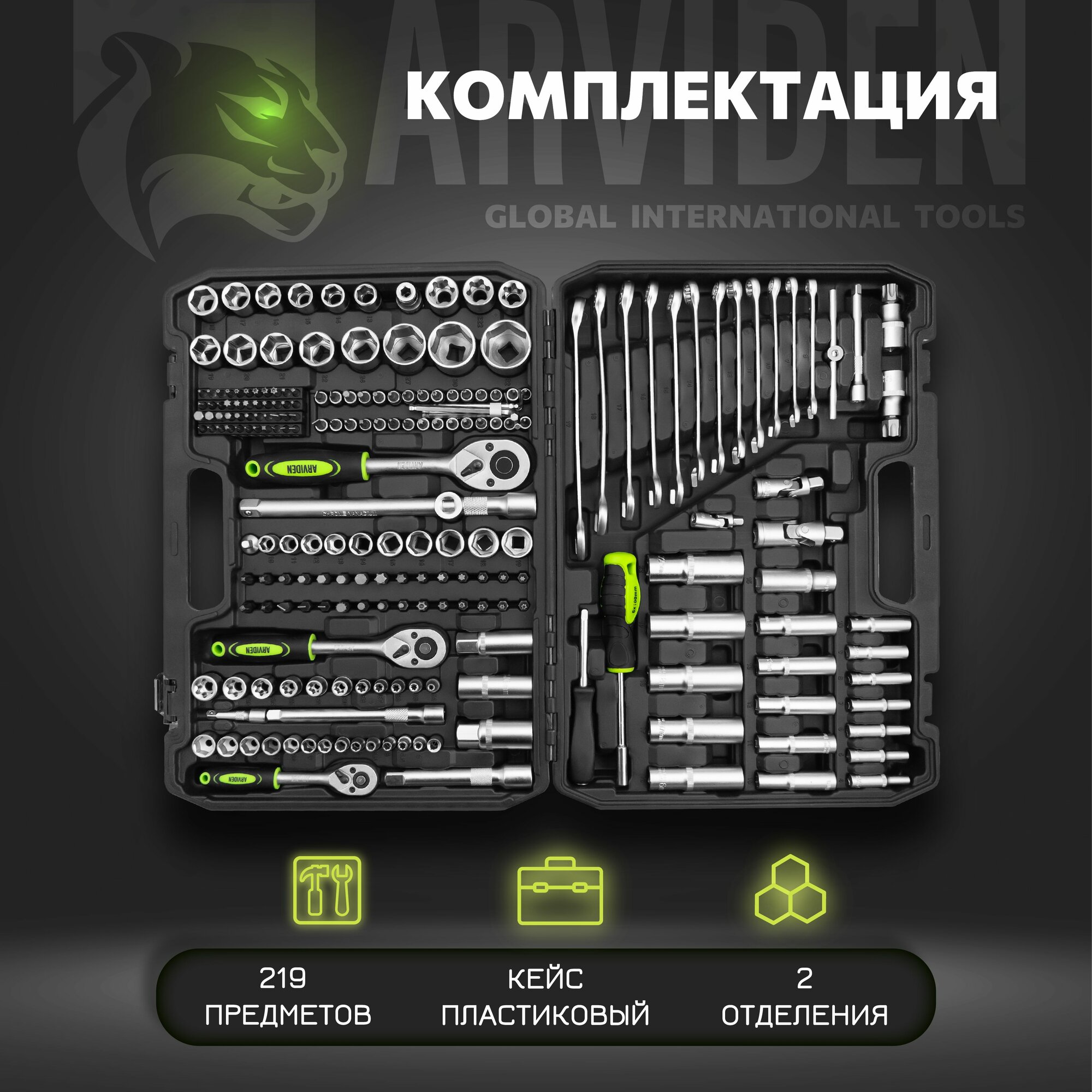 10 цен на Набор инструментов ARVIDEN 1/2", 1/4", 3/8 219 предметов, CRV