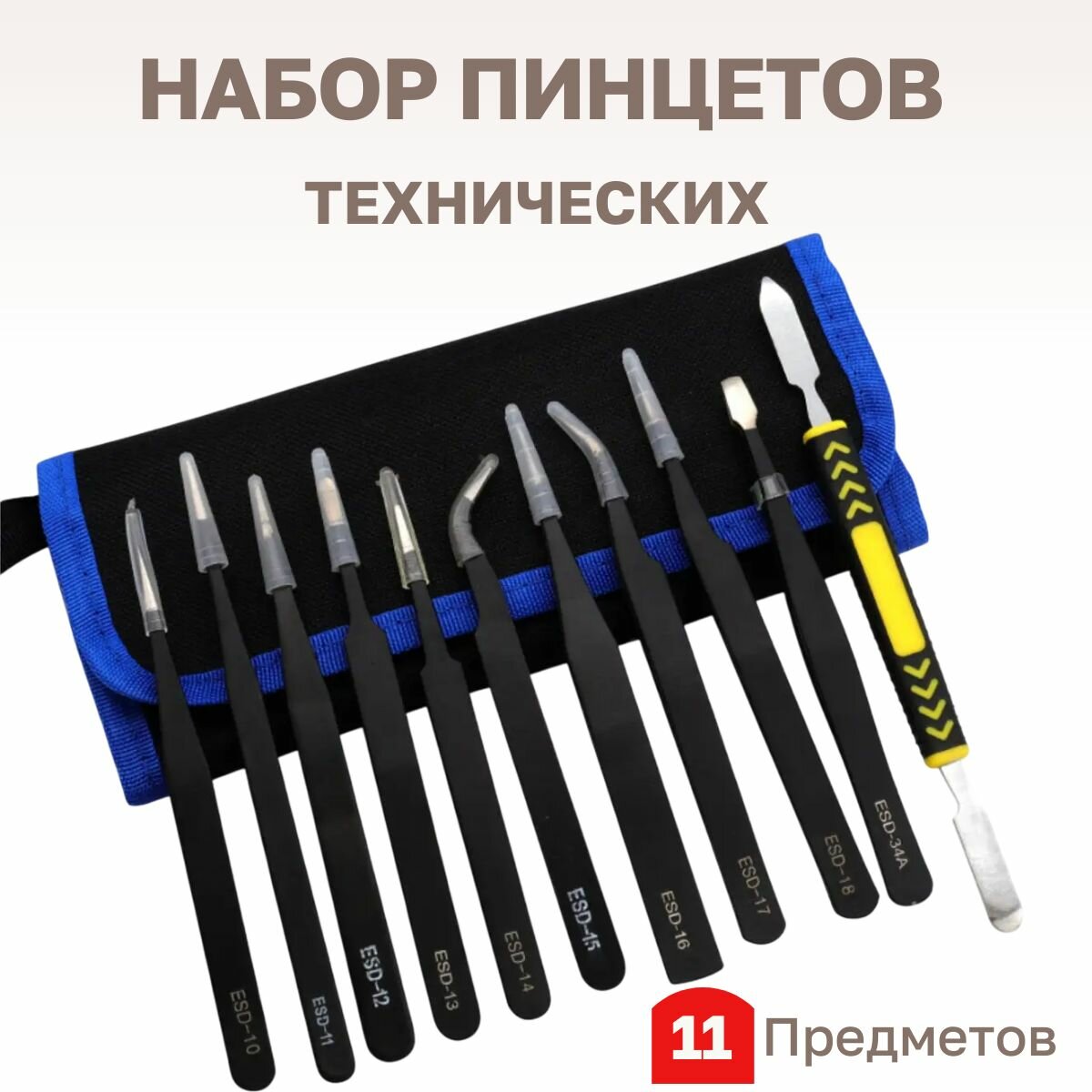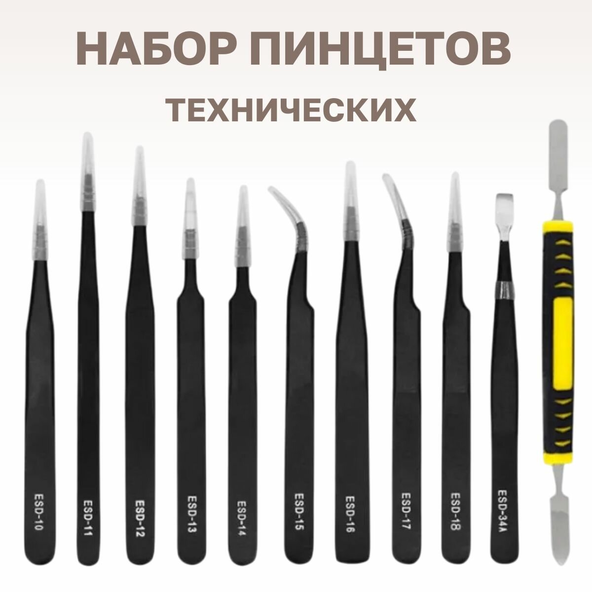 Набор пинцетов 11 предметов антистатических технических для пайки и ремонта ювелирных изделий информация: